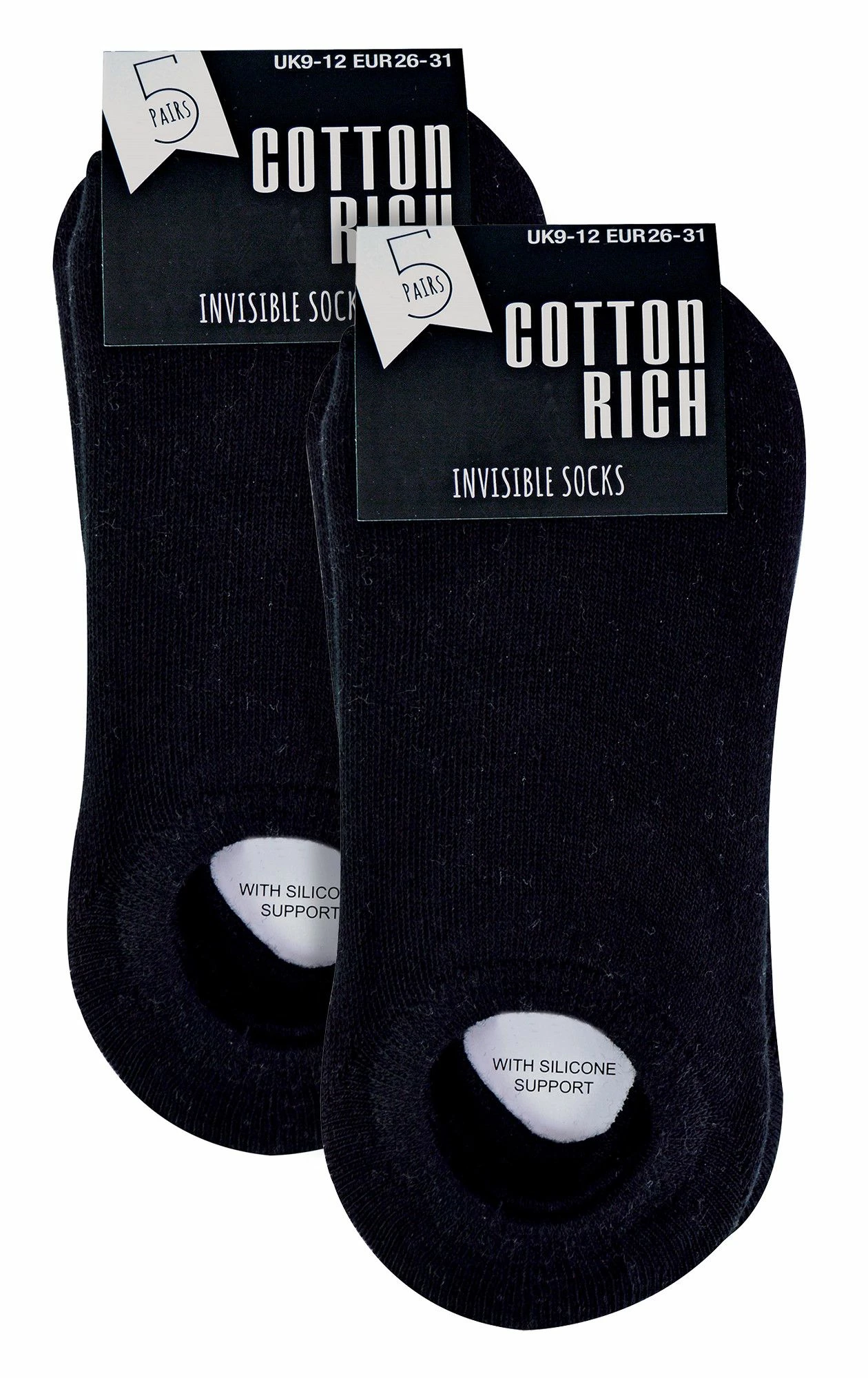 Kids 10 Pack Invisible Trainer Socks With Silicone GripsIf you’re looking for a fun and comfortable sock that will make your kids’ feet feel great, look no further! These Kids Invisible Trainer Socks with Silicone Grips are the way to go!These White Invisible Socks with Silicone Grip are not only perfect for everyday wear and make all their favourite shoes fit like a glove but they come in a great 10 pair value pack which is great value for money, making sure they’ve got plenty to last!The low cut invisible style means they won’t be tripping over their own feet and makes them great for trainers and other shoes with a thinner sole, the best part? They have silicone grips along the bottom to keep them from slipping off your child’s feet when they’re running around outside.These socks are designed to provide a comfortable, low-cut sock that is ideal for everyday wear. The cotton rich fibres make sure that they’re super soft, comfortable and capable of withstanding the busy day. Available in White, the pack comes in three sizes: 3-7 years, 8-11 years, and 11-14 years. They’re machine washable, too so you can throw them in with all your other laundry without worrying about shrinking them!Extra Product DetailsKids Invisible Socks10 Pair Value PackCotton Rich MaterialLow Cut Invisible StyleGreat For TrainersSilicone Support GripsIdeal For The EverydayAvailable In White3 Size OptionsMachine Washable