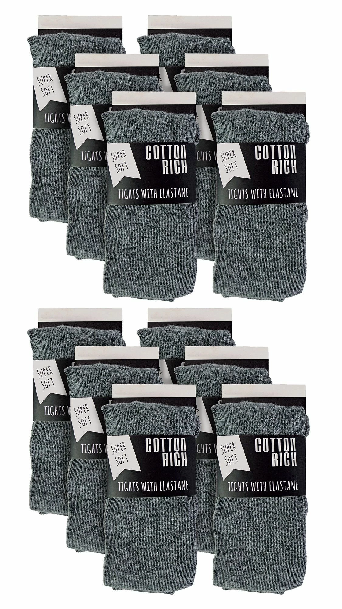 Girls 12 Pair Value Pack Cotton Tights For SchoolYou’ve got a lot on your plate. You’re trying to get your kids ready for school and yourself ready for work in the morning, and you just don’t have time to deal with the hassle of tights that don’t fit just right. Well worry not as these Girls 12 pack cotton tights are perfect and great value for money!They are made from super soft and comfortable cotton rich fibres which feel great against the skin. This ensures that your kids will stay happy and comfy throughout the day! They have a super soft feel which is perfect for everyday wear and won’t irritate sensitive skin.These tights come in 3 colour variations including Black, Grey and Navy so they can choose their favourite colour or even mix and match them with their favourite outfits. These tights feature an elasticated waistband for added comfort whilst wearing them during whatever activities they get up to!Finally, these tights are perfectly designed for School uniforms; however they can just as easily be used for everyday wear when they’re out playing with friends!These soft tights are a 12 pair value pack and come in 3 traditional colours: Black, Grey & Navy. They are made from 75% Cotton 20% Polyester 5% Elastane and come in 5 Sizes – 3-4 Years, 5-6 Years, 7-8 Years, 9-10 Years & 11-12 Years. They are Machine Washable at 30.Extra Product DetailsGirls 12 Pack TightsCotton Rich FibresSuper Soft FeelSoft & ComfortablePerfect For School12 Pair Value PackGreat For EverydayGreat Value For Money3 Colour Options – Black, Grey & Navy5 Sizes – 3-4, 5-6, 7-8, 9-10 & 11-12 YearsMachine Washable