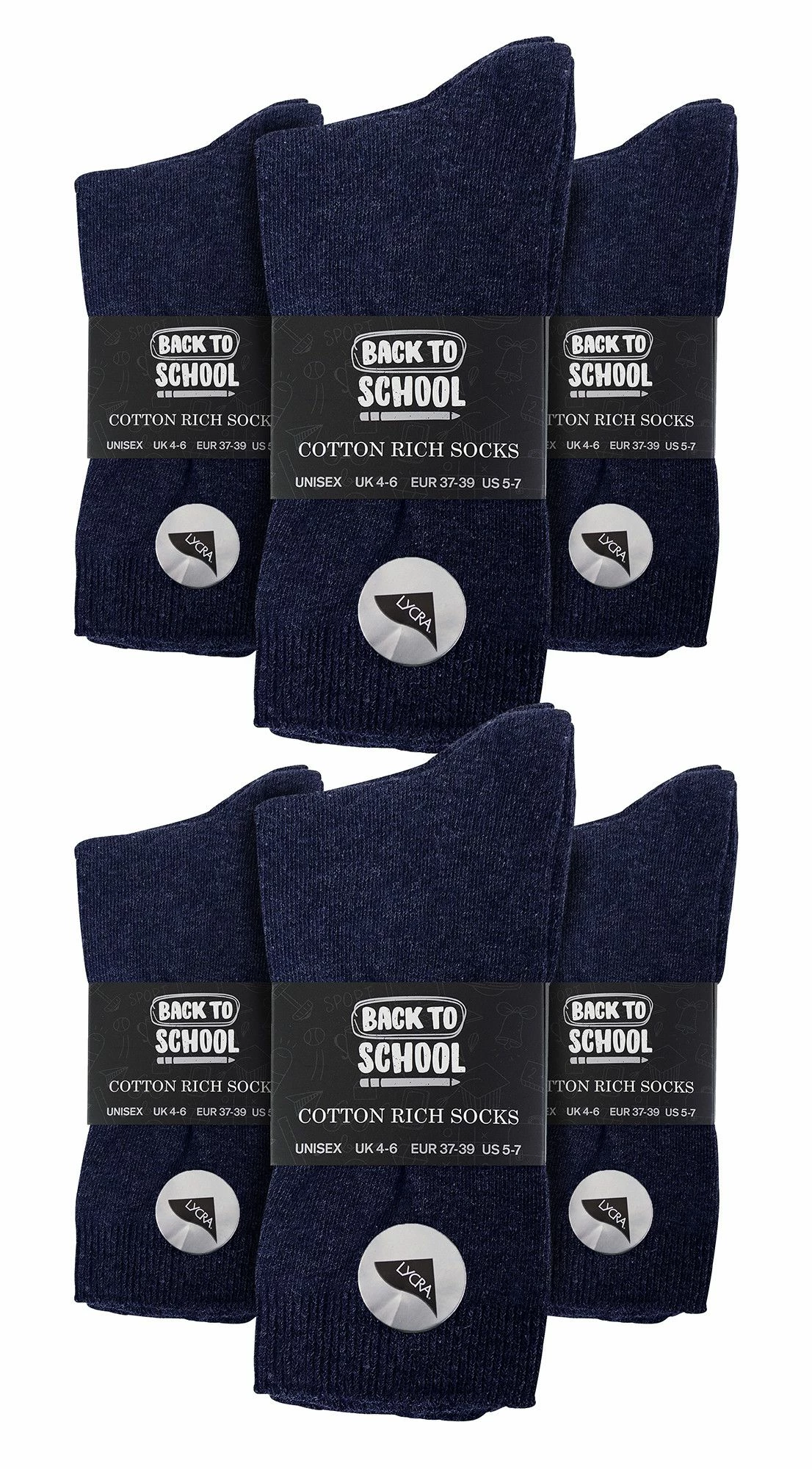 12 Pack Kids Cotton Rich School SocksWhen Summer is almost over and they’re about to head back to School for a brand new year, you need to make sure they’ve got enough socks to last them as long as possible. That’s why these Cotton Rich 12 Pack School Socks are the perfect bundle to stock up their sock drawer!These school socks are ideal for kids running around the playground as they don’t keep riding down.They can also be worn during normal / casual weekends when kids are full of energy!Each Sock is of great quality with Cotton Rich material to give them maximum softness and comfort no matter what they get up to during or even after school. They are available in 4 different classic colours; Black, Grey, Navy & White to match any school uniform, making them ideal to wear even on non-uniform days too!They wash beautifully and do not shrink when washed. Just follow the washing instructions on the packaging. Made from 80% Cotton, 18% Polyamide, 2% Lycra, they’re for both Boys & Girls, available in three sizes; 3-6 Years, 7-10 Years & 11-14 Years.Extra Product DetailsChildrens School SocksCotton Rich FibresSoft & Comfortable12 Pair Value PackIdeal For School UniformCan Be Worn Any TimeDesigned For Both Boys & Girls3 Size OptionsMachine Washable