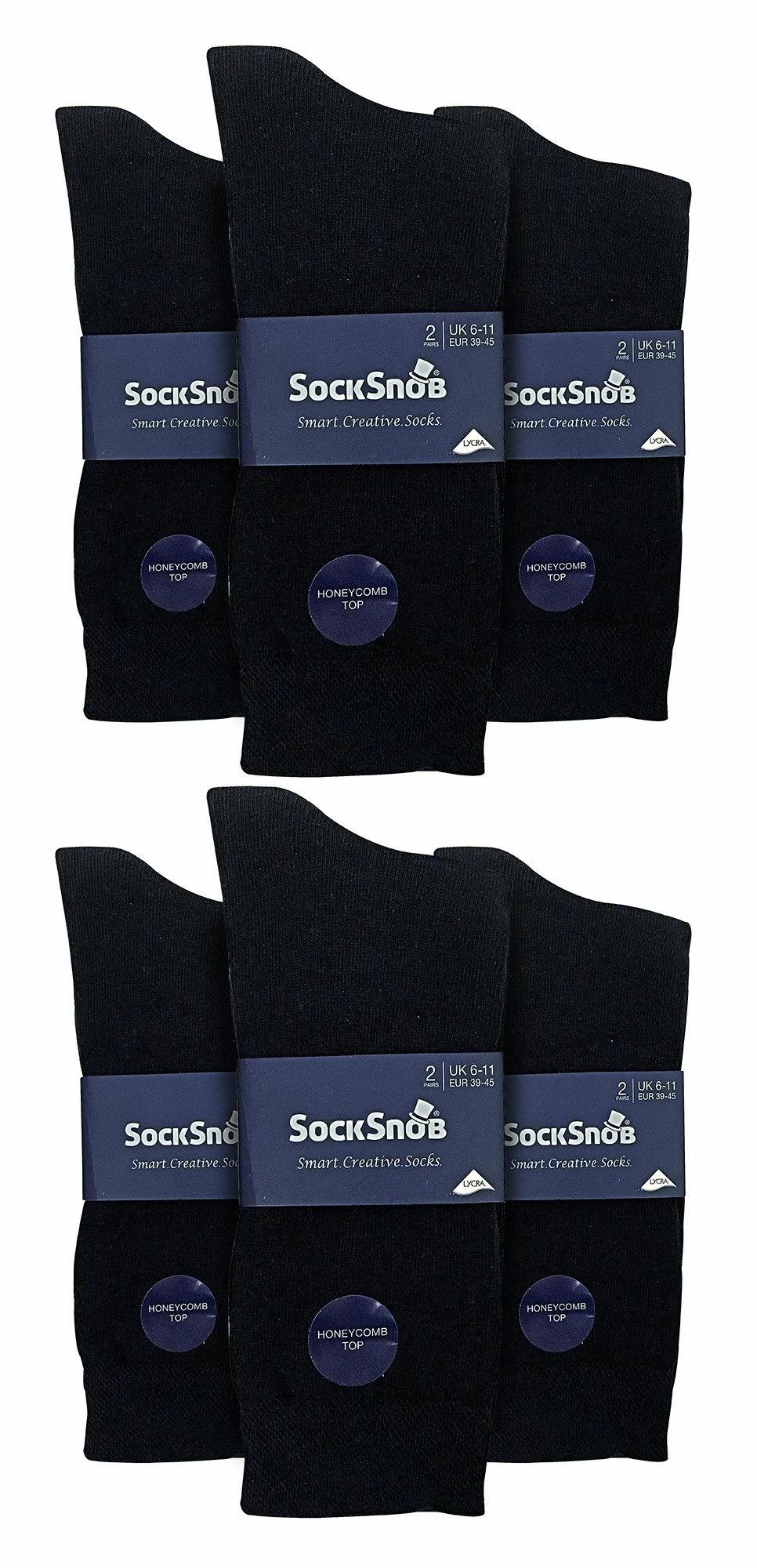 12 Pair Value Pack Men’s Sock Snob Premier Collection Cotton SocksWhen you buy these 12 pack pair of socks from Sock Snob Branded, you get value for money as well as quality at an affordable price point without compromising on comfort or style!Men’s patterned dress socks are a must-have for every man. They’re great for any occasion and they come in 7 different styles/colours.These socks are super soft and very comfortable to wear. The honeycomb top enhances comfort while the flat toe seam helps prevent abrasion caused by friction against your feet while walking or running around all day long.They’re made from 80% cotton to ensure that you get the most comfort out of them. They have flat toe seams to ensure durability and are machine washable so you can keep them clean even after long wear. The high moisture wicking abilities and temperature control will keep your feet warm in the winter and cool in the summer.There are 7 modern styles to choose between, 5 striped styles named after iconic cities with an additional 2 styles in plain Black & Black, Navy & Grey. They are made from: 80% Cotton 10% Nylon 7% Polyester 3% Lycra and are machine washable.Extra Product DetailsMen’s Patterned Dress SocksSock Snob BrandedSuper Soft CottonGreat Socks For Any OccasionHoneycomb Top To Enhance Comfort7 Style/Colour OptionsGreat Value For MoneyMen’s One Size: 6-11 UK80% Cotton 10% Nylon 7% Polyester 3% LycraFlat Toe SeamMachine Washable