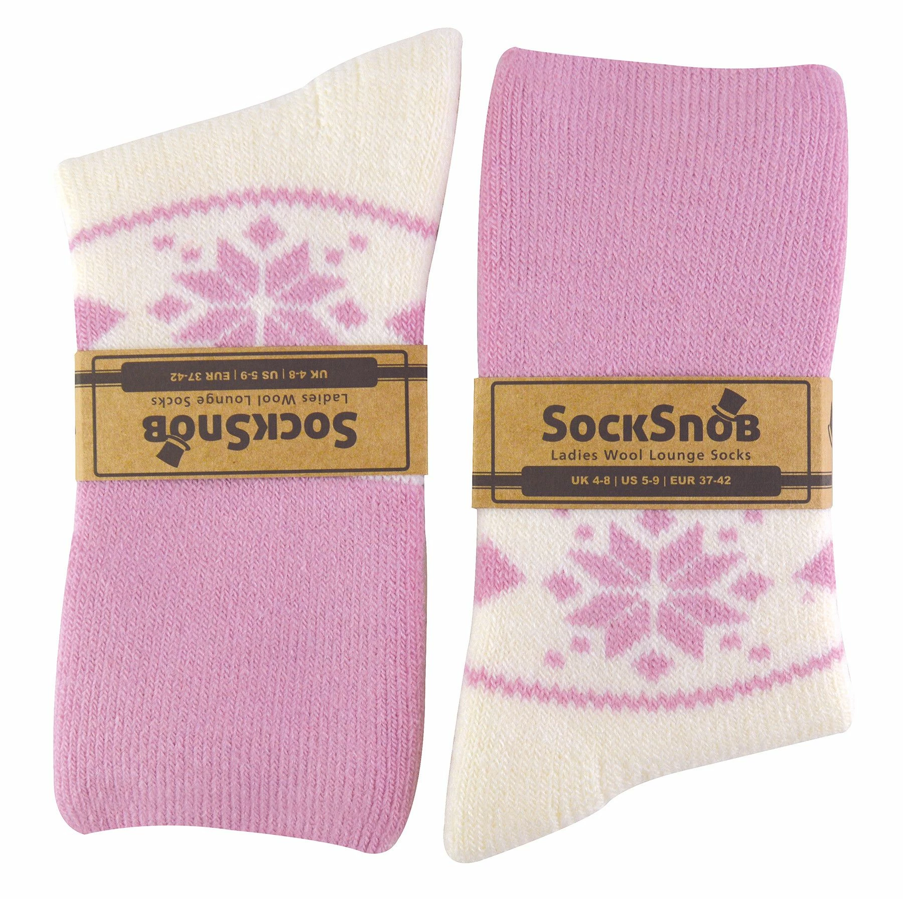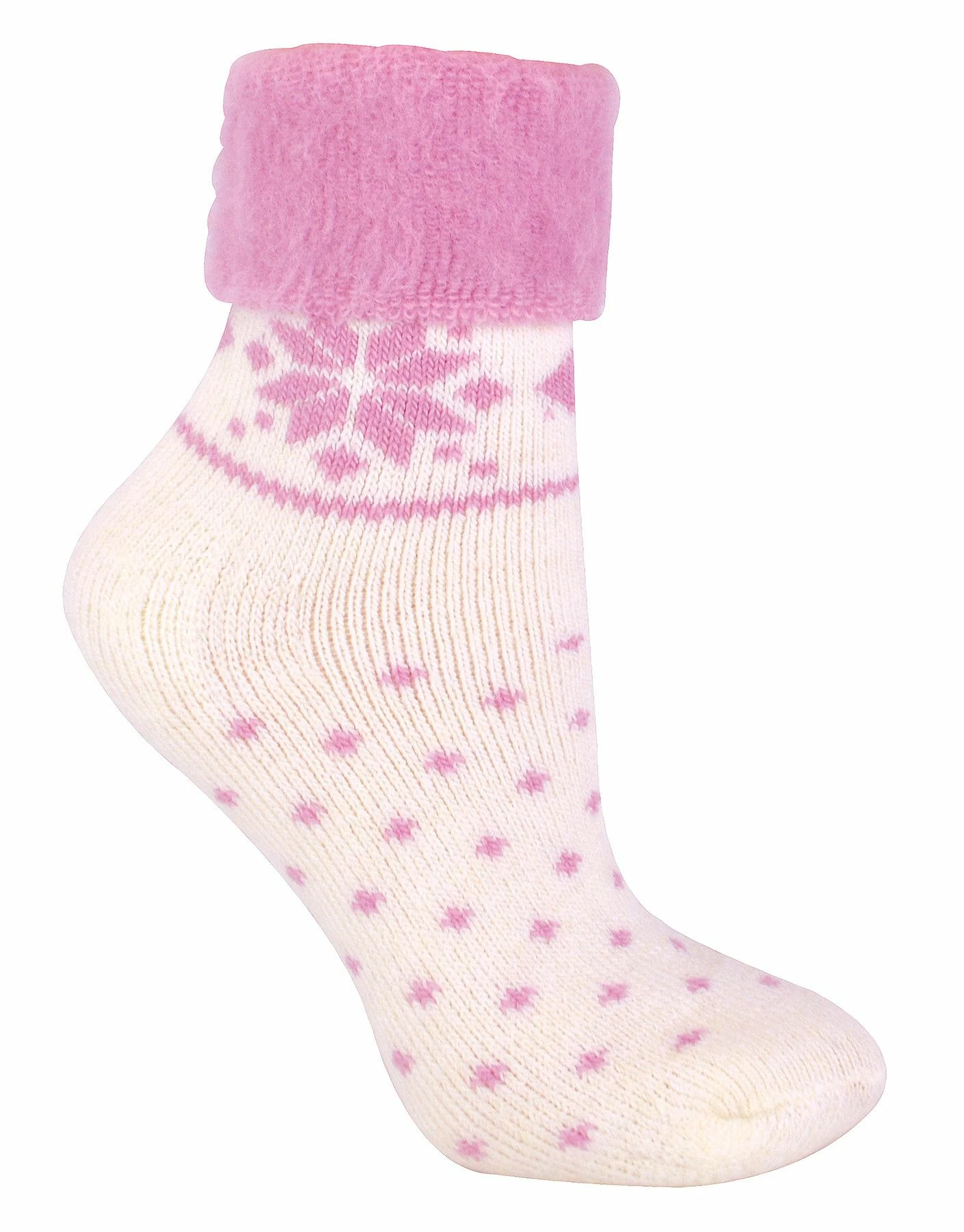 Ladies Wool Lounge Socks with Fairisle DesignAre you in need of some good quality lounge socks for those chilled out evenings? Well our stylish Ladies Wool Lounge Socks are the ideal addition to any stylish woman’s wardrobe who values both warmth and comfort.Not only can you use these socks pulled up to keep you extra warm but they are also designed to turn over as well, for a bit of extra function and style to your nights in. You can also pair these with your most comfortable lounge-wear to be worn whilst relaxing to keep feet comfortable and warm at home.These lovely socks are made from a soft 25% Wool which is a natural thermal fibre, so there’s no need to worry about whether you’ll be warm. It may even help cut down on those pesky heating bills!While keeping you warm they’re also super soft and kind to your skin so you won’t be getting any irritation from them while you’re lounging around on the sofa at the weekends. They could even make a great gift or Christmas present with their cute fairisle design.They come in three great colours: Red, Grey and Cream, and are available in Ladies size 4-8 UK. They are made of 65% Acrylic, 25% Wool, 8% Polyamide, 2% Elastane and are machine washable.Extra Product DetailsLadies Lounge SocksA Great Wool BlendSoft & Comfortable3 Colours AvailableNatural Thermal PropertiesA Perfect GiftTurnover CuffIdeal For Lounging & RelaxingOne SIze: 4-8 UKMachine Washable