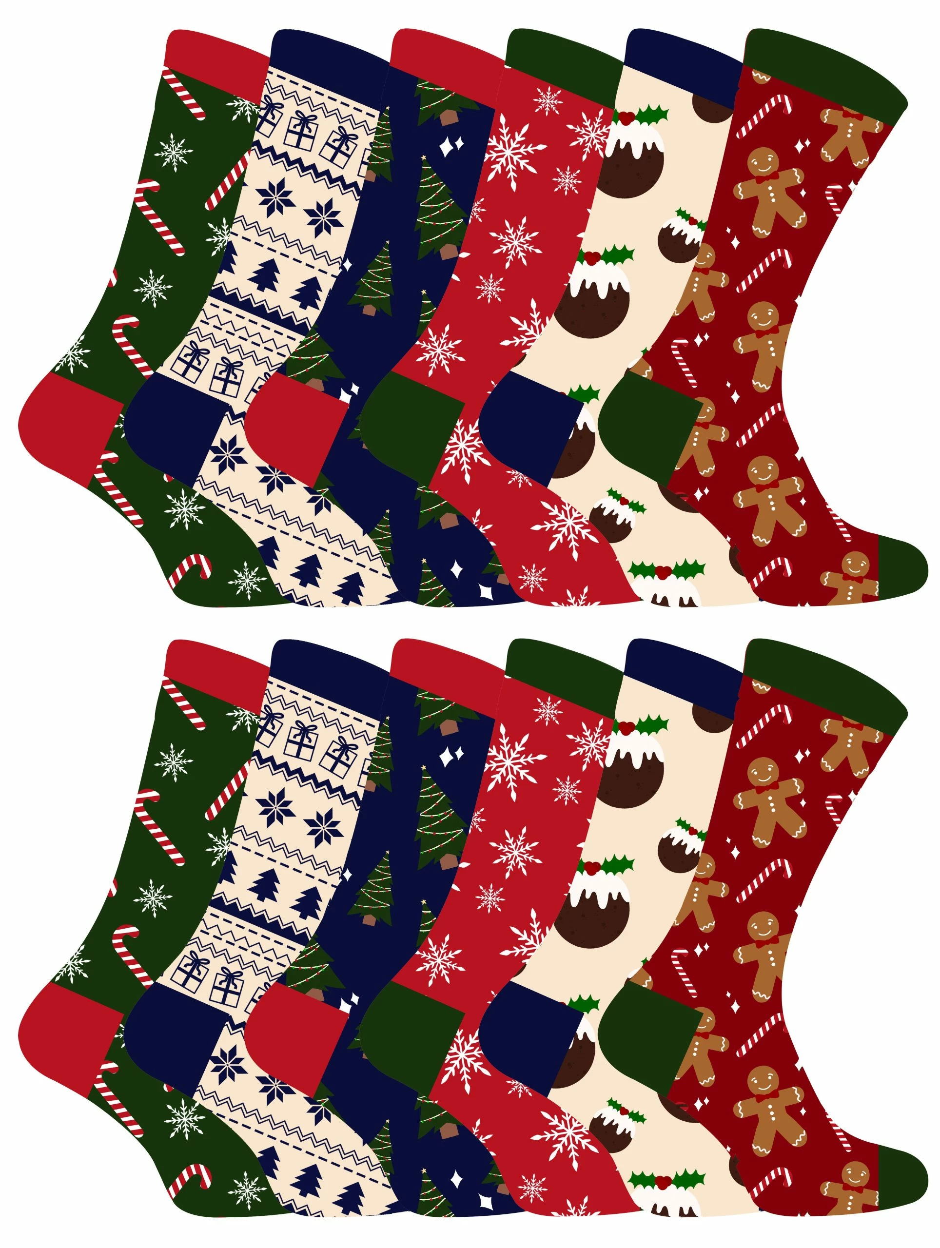 Sock Snob – Men’s Festive Christmas SocksChristmas is coming, and you know what that means: it’s time to start thinking about gifts for your loved ones. It’s never easy to find the perfect present for the men in your life, but we’ve got a great suggestion for you, our very own branded Sock Snob Men’s Festive Christmas Socks!They come in red, green, navy and cream colours so they’ll go with any outfit. Each pair comes with a festive design which include: Candy Canes, Fairisle, Christmas Trees, Snowflakes, Xmas Puddings and Gingerbread Men. They’re just waiting to keep your feet warm and comfy through every holiday party and family gathering.Made from cotton rich fibres, these socks are full of comfort and have a comfort top to keep them in place. These would make a great stocking filler and you can choose from a range of multipack options: 6 pairs, 12 pairs or 24 pairs – so you can get even more bang for your buck!We all love a little bit of Festive cheer at Christmas time, and these Men’s Festive Christmas Socks from Sock Snob are the perfect way to add some festive colour to the wardrobe. Whether you are looking for Xmas socks for yourself to go with your Christmas jumper or for a family member you’ll be satisfied.These socks come in packs of 6, 12, or 24 Pairs, with many festive patterns per pack. They’re made from 51% Cotton 31% Nylon 16% Polyester 2% Elastane, are available in sizes 6-11 UK, 39-45 EU, 7-12 US and are machine washable.Extra Product DetailsMen’s Christmas SocksSock Snob BrandedCotton Rich FibresMultipack Options: 6, 12 or 24 Pairs6 Festive Designs Per PackComfort TopRed, Green, Navy & Cream ColoursA Perfect Xmas GiftGreat Value For MoneyMen’s One Size: 6-11 UKMachine Washable