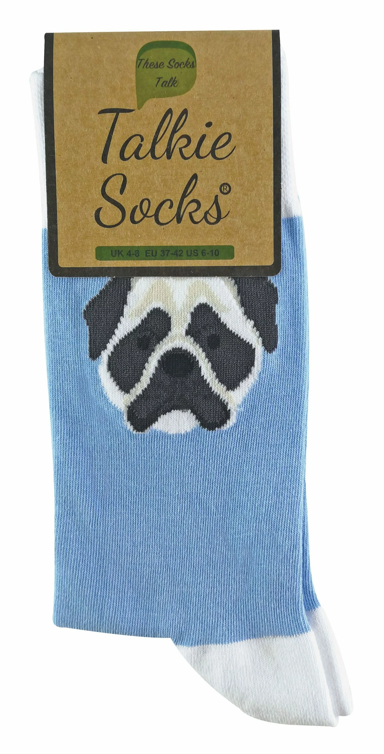Talkie Socks with Cat & Dog Faces Are you looking to make an impression with your new found sock swag? If you are then look to the refreshing new brand that is Talkie Socks with their vast new collection. This range of cat and dog socks are so fabulously put together that you will be fighting like cat and dog to get your hands on them! The Talkie Socks logo is printed on the foot of the sock. These soft cotton crew socks have knitted designs of your favorite types of dog. Pick between a scotty dog, pug and a beagle to show your love for your best friend. Or, choose our cat style if you are more of a cat person. They all have their specific pastel colour, so if you are in the mood for bright feet then these would be purrfect. As a gift, these socks are a brilliant secret santa or stocking filler idea. They are also made out of breathable cotton and are cotton rich with a content of 70% cotton 28% nylon and 2% elastane. Unlike some other design socks, Talkie Socks also focuses on comfort. They also have a handlinked toe to decrease the irritability of the toe seam, not only making your feet stylish but also happy. These socks are available in a size 4/8 UK 37/42 EU 5-9 US and they are available to purchase in a one pair pack. They are also safely machine washable. Extra Product Details Talkie Socks 3 Dog Designs / 1 Cat Designs Pastel Colours 70% Cotton 28% Nylon and 2% Elastane Handlinked toe Size 4/8 UK 37/42 EU 5-9 US One Pair Pack Machine Washable