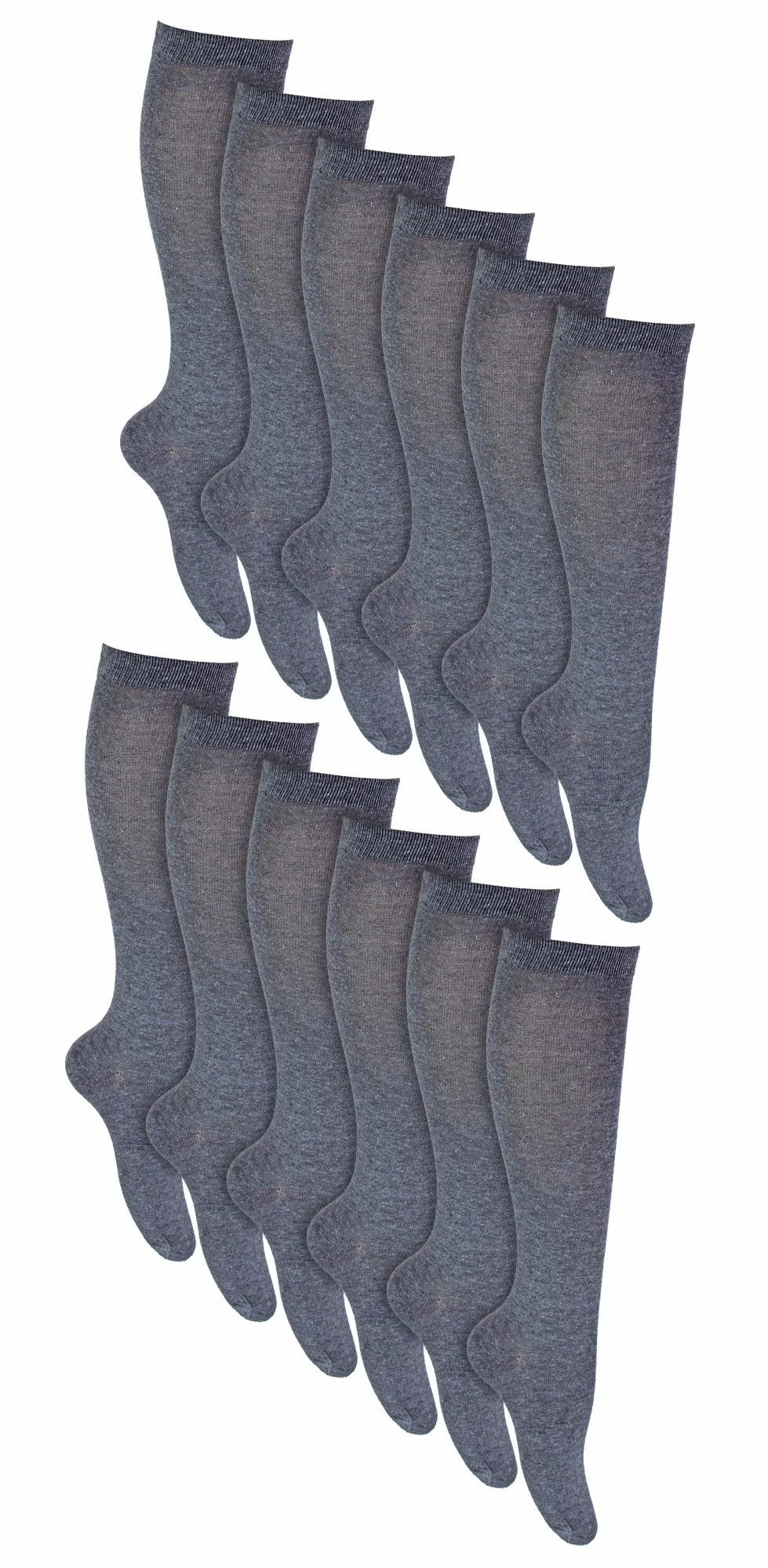 Girls 12 Pack Knee High Cotton SocksWe all know how hard it can be to find the right long socks for your little girl. It’s not just about picking the right colour or size, it’s about comfort, too. That’s why we’re happy to show you our new Girls Knee High Socks in a great 12 pair value pack!These socks are made with cotton rich fibres that are soft and comfortable, so they’re perfect for everyday wear, making sure they’ll stay comfortable throughout!They’re perfect for your little one’s school uniform, or just everyday wear. The knee high length means they’ll stay up all day long without slipping down into her shoes and causing blisters, which means she can spend less time worrying about her socks and more time playing with her friends.We love these socks because they’re great value for money as they come in a great 12 pair pack which means you can stock up their sock drawer to last them a lot longer! They come in four different colours: Black, White, Grey and Navy. So you can always find something that matches whatever her outfit is that day!These socks are a 12 pair pack and come in 4 traditional colours: Black, White, Grey & Navy. They are made from 78% Cotton 17% Polyester 5% Elastane, come in 3 Kids Sizes: 3-7 Years, 8-11 Years & 11-14 Years and are Machine Washable at 30.Extra Product DetailsGirls Knee High Socks12 Pair Value PackKnee High LengthCotton Rich FibresSoft & ComfortablePerfect For SchoolGreat For EverydayGreat Value For Money4 Colour Options – Black, White, Grey & Navy3 Sizes – 3-7 Years, 8-11 Years & 11-14 YearsMachine Washable
