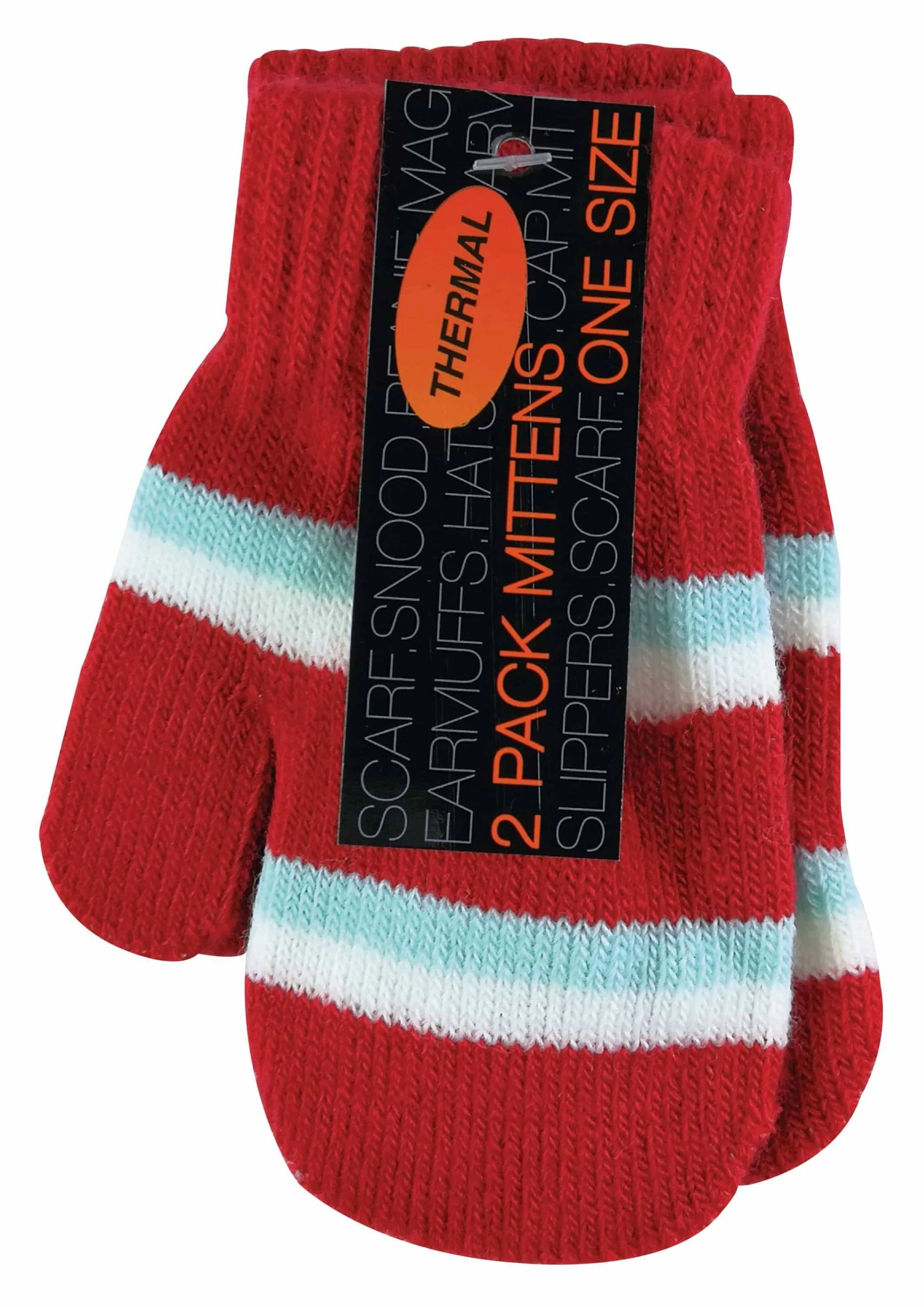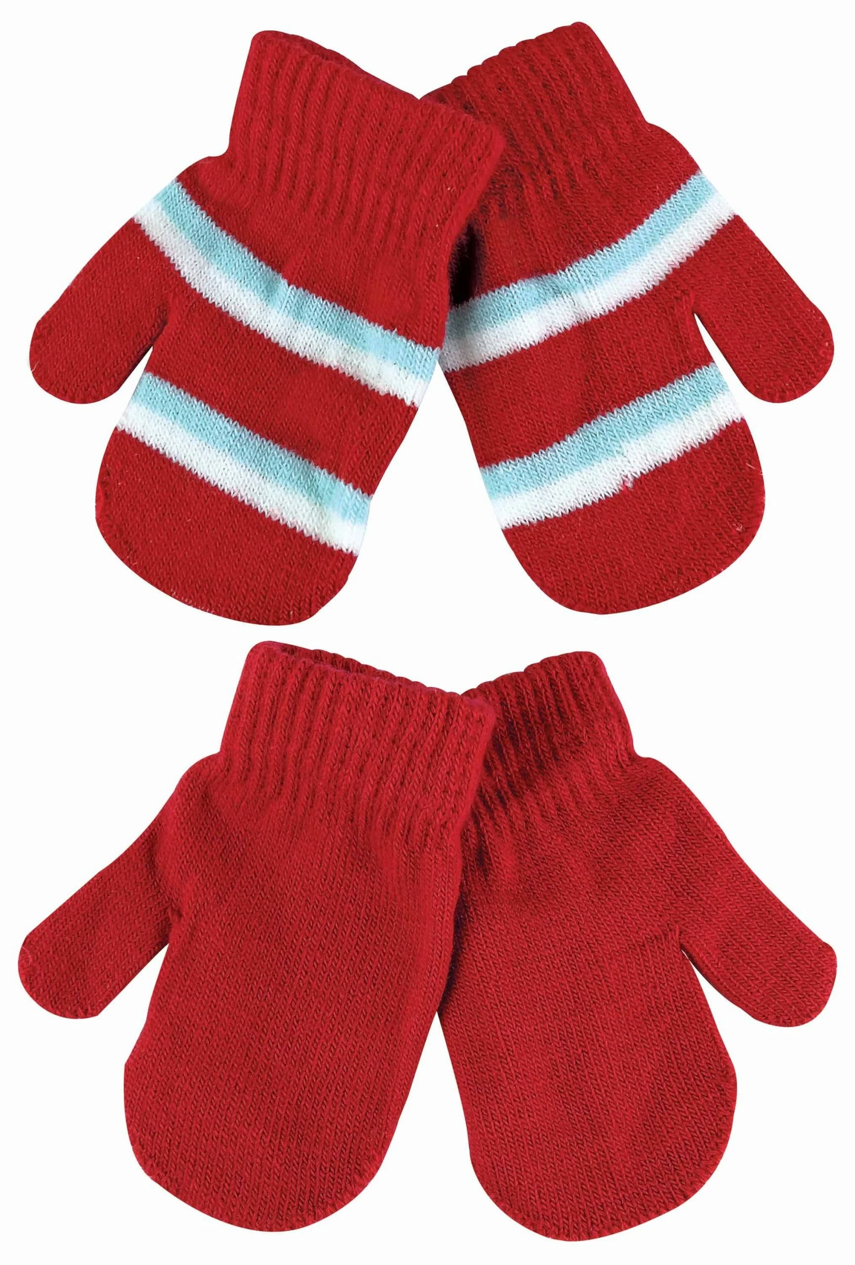 Baby Mittens 12-24 Months We never want to see our babies get cold hands, thats why we are offering these baby unisex mittens to keep their hands toasty and warm. There are 3 different coloured styles in these baby mittens including navy blue, pink and red. One of the styles is a plain coloured mitten whilst the other has a stripe going through the hand. They are available in a 2 pair pack. These mittens are knitted from insulating acrylic and are soft on the inside, keeping your babies hands soft and cosy. They are most suitable for babies 12-24 months. They are made of 82% acrylic 15 polyester and 3% elastane and they are machine washable. Extra Product Details Baby Mittens 12-24 Months Unisex 3 Styles Blue, Pink and Red 82% acrylic 15 polyester and 3% elastane