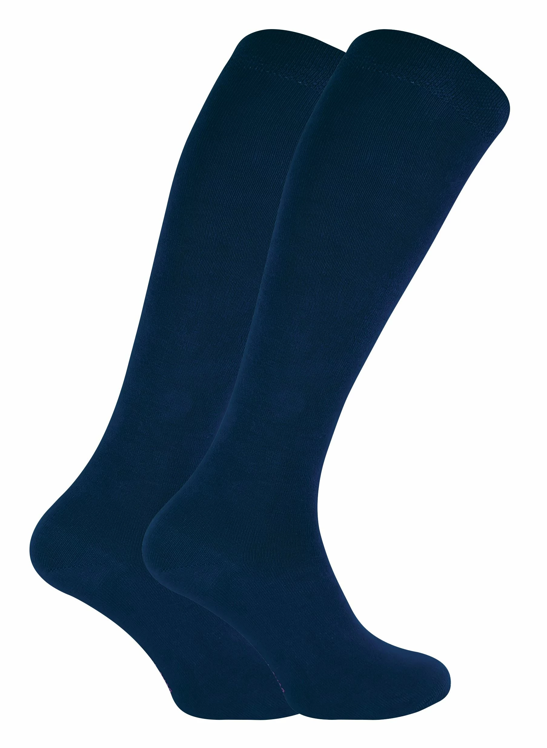 2 Pack Ladies Extra Long Bamboo Socks Treat your feet to these amazing long length socks made from natural bamboo materials! These soft and smooth high socks are also super-skin-friendly and healthy. Bamboo materials helps the wearer keep feet pleasantly fresh all day, with thanks to the hollow structure of the fibres, making bamboo a super absorbent material. This means that bamboo effectively wicks moisture and sweat away from the skin. Bamboo socks are breathable and up to four times more absorbent than cotton socks. The silky-feel bamboo blend fabric has antibacterial properties which is able to resist odours and fungal formation. These socks also have natural thermal regulation for warm legs and feet, which helps to maintain and regulate normal body temperature. They also feature smooth handlinked toe seams for an additional layer of comfort. Whether you’re relaxing around the home or working from the office, these bamboo socks will get you through the day with their effective moisture wicking and breathable properties. These socks feature elasticated comfort cuffs so your legs feel comfortable in wearing these soft socks. Bamboo socks are naturally hypoallergenic and anti-bacterial. These socks come in a pack of 2 pairs, they are available in the colours of Black, Navy, Deep Fuchsia. These socks are available in sizes 4-7 UK, 37-42 EU, 5-8 US. Extra Product Details – Extra Long Bamboo Socks – Womens Ladies Socks – 2 Pair Pack – Super Soft – Handlinked Toe Seams – Breathable Properties – Moisture Wicking – Super Absorbent – Soft Bamboo Socks – Long Leg Length – 4-7 UK, 37-42 EU, 5-8 US