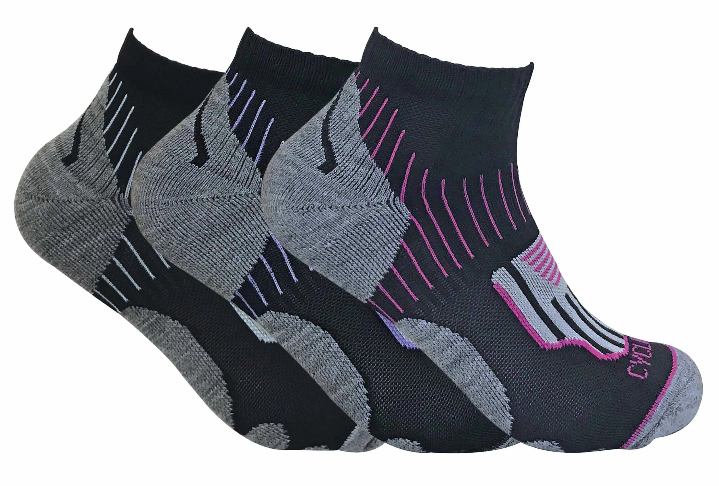 High-Performance Ankle Cycling Socks If you are an avid cycler and are looking for a reliable pair of functional cycling socks to keep your feet comfortable and temperature regulated whilst you are cycling, then consider these men’s cycling socks. These women’s cycling socks have many features that will help maintain your performance. Firstly, they are moisture wicking which helps keep your feet dry, breathable and temperature regulated keeping them cooler in the summer. The mesh panels knitted in the sock facilitate this. Their short length also allows for more flexibility and breathability. The sock is also layered with cushioned fabric to prevent blisters and keep your feet generally comfortable. The cushioned areas protect the heel, toe, and guard against Achilles tendon damage. These socks are also hard wearing with a high polyester content to make them durable. These women’s cycling socks are available in a 3-pair pack and come in a size 4-7 UK 37-42 EU 4-8 US. They are made from 45% polyester 35% acrylic 18% polyamide and 2% elastane. They are also safely machine washable. Extra Product Details * Cycling socks * 3 pair pack * Size 4-7 UK 37-42 EU 4-8 US * Moisture Wicking * Breathable * Temperature Regulated * Cushioned * Machine Washable