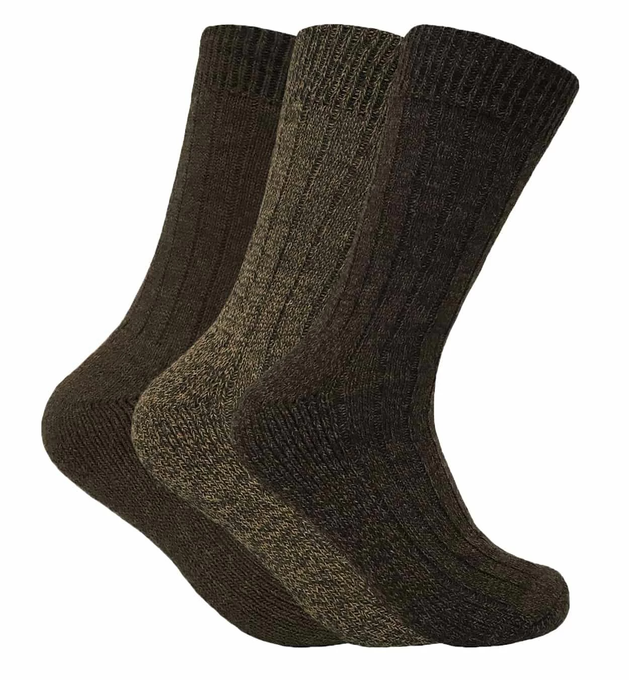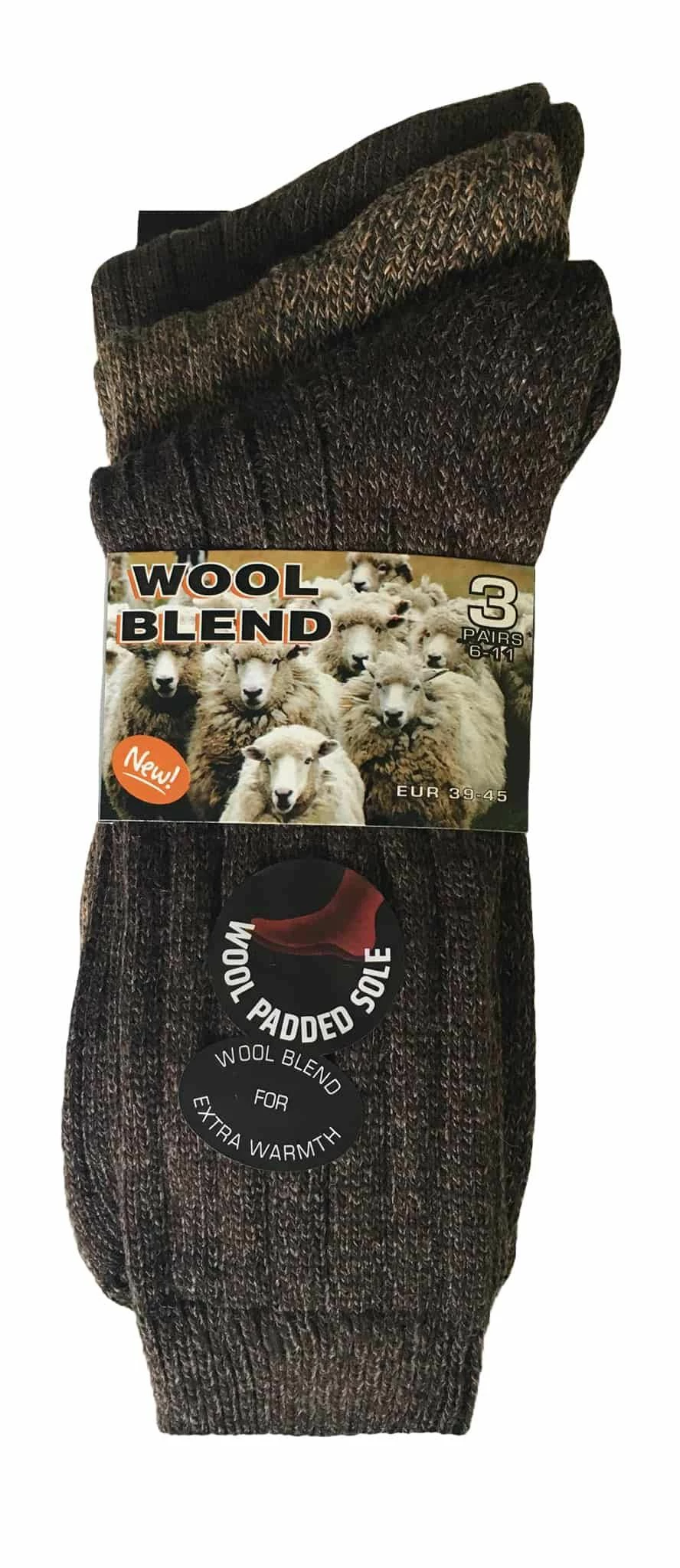 Mens Wool Padded Sole Socks When your in the great outdoors it is essential to keep warm and comfortable. These wool blend socks are designed especially for that purpose. Coming in a 3 pair pack, these wool socks are guaranteed to keep your feet extra warm. They are designed to trap the heat that comes from your natural body heat. Extra features include a terry cushion extra padded sole for extra comfort and support, this becomes very helpful when walking on rough terrain. These socks also have a unique stay up top to ensure that they don’t fall down easily. Unlike most wool socks, these socks are designed to let your feet breath. These wool blend socks are available in 4 different colour ways including brown, blue, black and grey. They are a size 6-11 UK 39-45 eur. Extra Product Details * 4 colours to choose between * 3 pair pack * Terry cushion * Extra padded sole * Size 6-11 UK 39-45 eur. * Designed to trap the heat * 35% Acrylic 35% Polyester 20% Wool 10% Mixed Fibres * Keep your feet warm and comfortable * Designed to let your feet breath