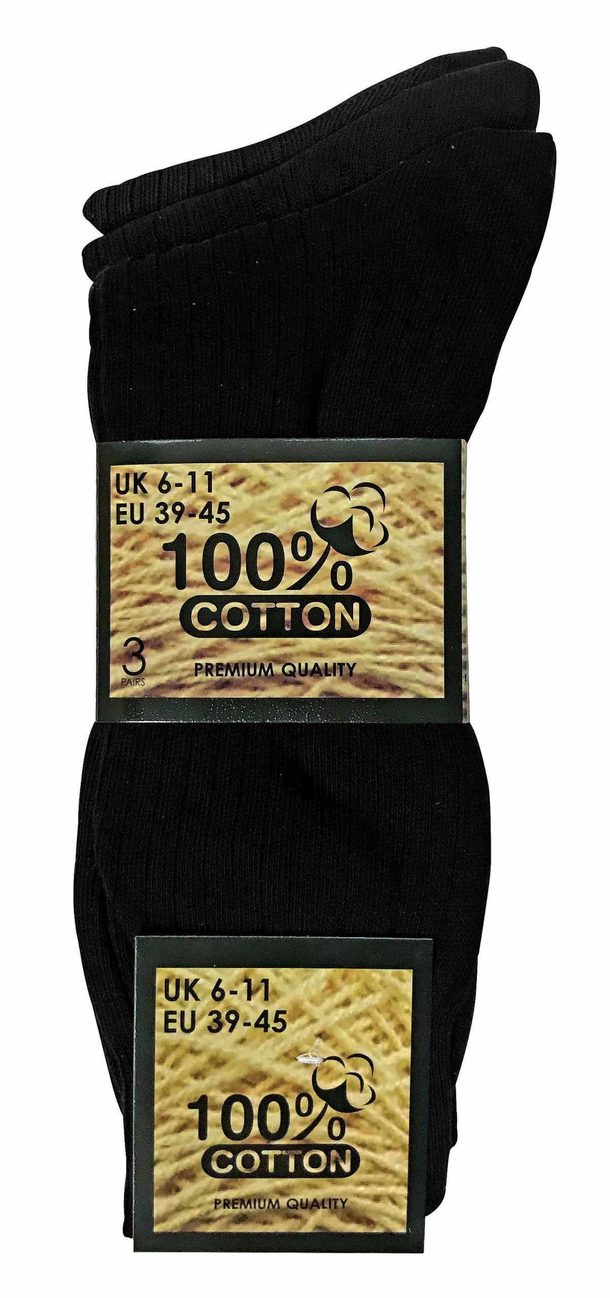 Mens 100% Cotton Socks Every man needs a pair of super comfortable and practical socks in his life, and these 100% cotton socks provide just that! When it comes to comfort, everyone agrees that the best bet is cotton as of its natural softness and moisture wicking. These socks are fully ribbed to help keep them up, and are great for everyday wear, or as light, thin pair of formal socks. Everyday technology for any mans feet!These premium quality socks are 100% Cotton which means that they are extra soft and comfortable, making them perfect for wearing for long days at work or around the house. You won’t suffer with any nasty irritation while wearing these socks, and they will make sure that you are comfortable as you can be! As of their cotton content these socks are breathable and will help keep feet cool and fresh. This means there is less risk of socks becoming uncomfortable and also means there is less chance of blistering. These socks also have a loose top, which ensures that you do not end up with any nasty constriction rings around your legs after prolonged use.These socks are a size 6-11 UK and are available in two colour variations; Black and an assortment of brown/beige.Extra Product Details- 6 Pairs- 100% Cotton- Size 6-11 UK or 11-14 uk- 2 Colours- Super soft- Extra comfort- Moisture wicking- Ribbed design- Casual or formal wear- Loose top- No irritation