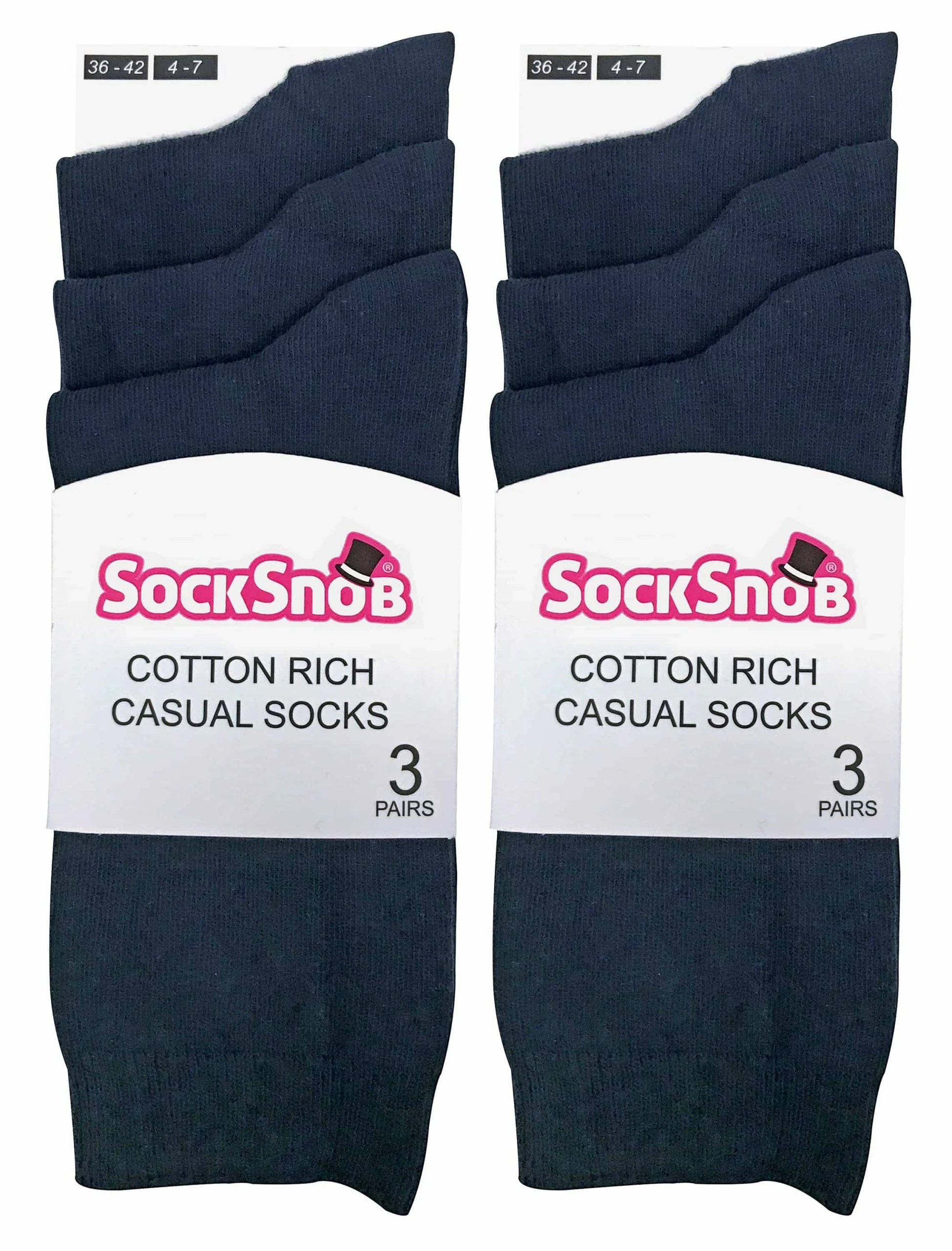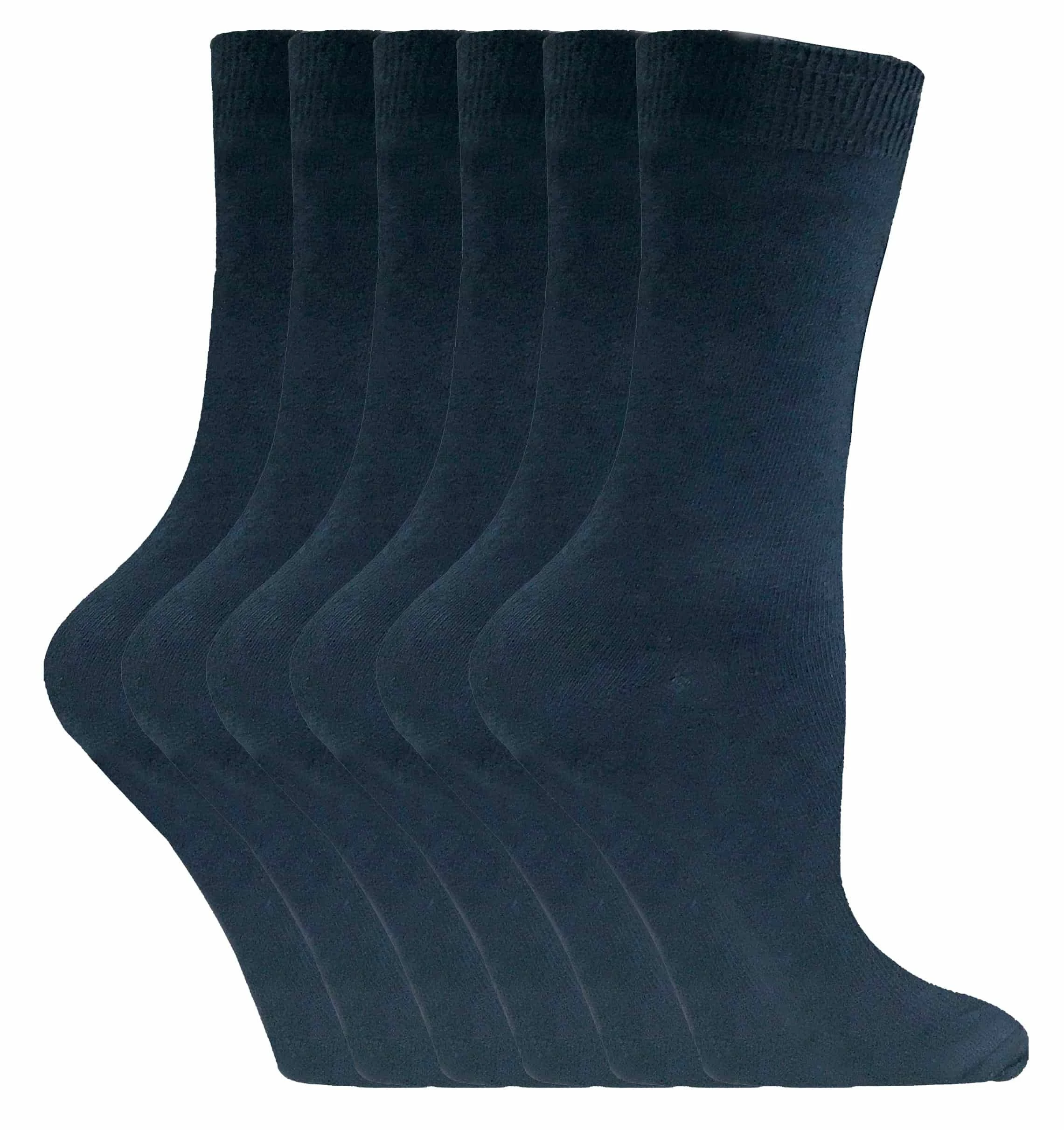 Ladies Cotton Socks These super soft cotton rich socks are perfect for everyday-wear, being simple and practical. Being cotton rich, these socks are great for all-day comfort as they are super soft to wear. Great for casual wear, or for a formal situation. They can also be used as comfortable school uniform socks. These super soft socks will bring you the utmost comfort and practicality in any day situations. Available in many different colours in the ladies size 4-7 uk. Extra Product Details – 6 Pair pack – Navy blue – Sized 4-7 uk – Cotton rich – Soft grip top – Super comfortable – Great casual socks – Simple and practical