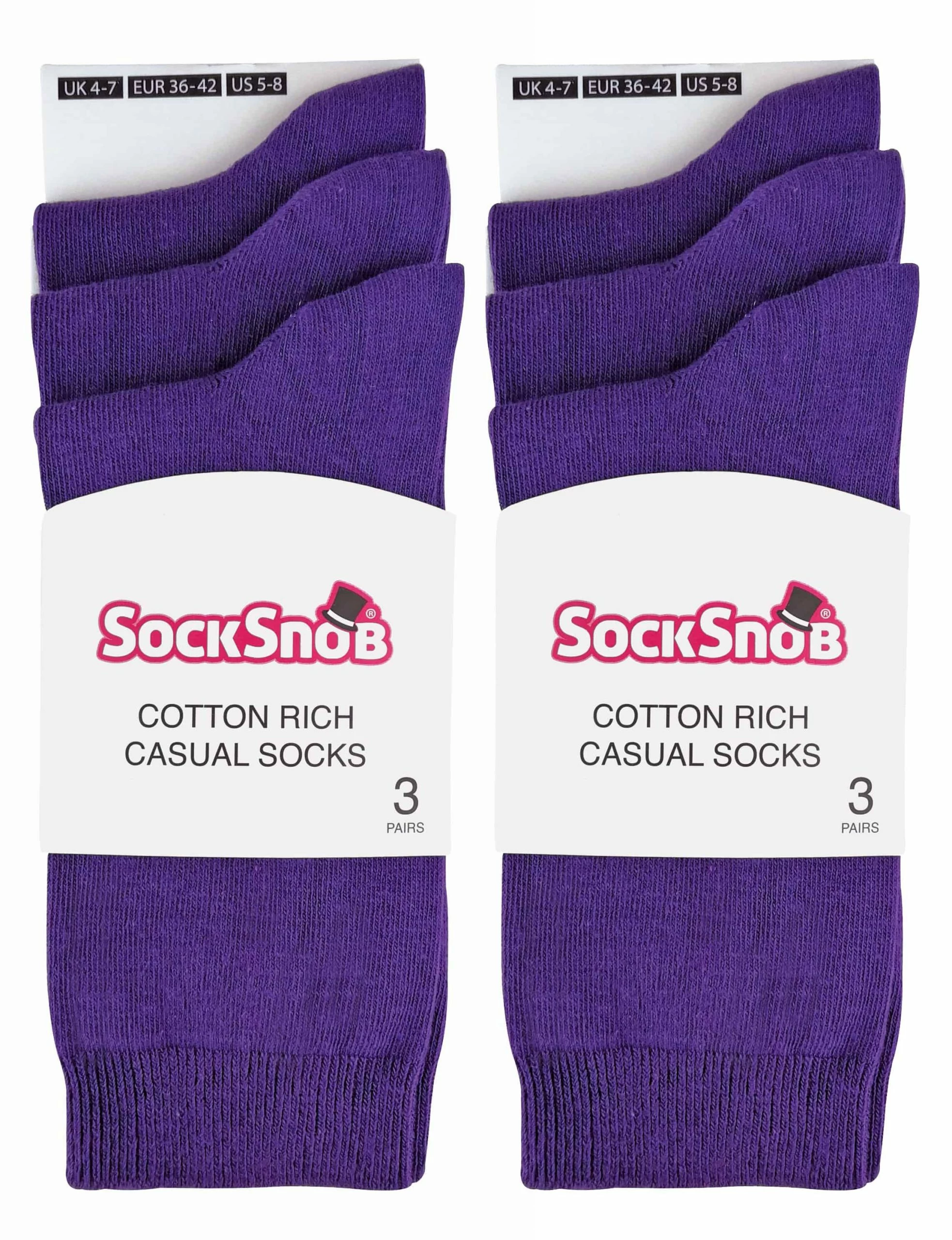 Ladies Cotton Socks These super soft cotton rich socks are perfect for everyday-wear, being simple and practical. Being cotton rich, these socks are great for all-day comfort as they are super soft to wear. Great for casual wear, or for a formal situation. They can also be used as comfortable school uniform socks. These super soft socks will bring you the utmost comfort and practicality in any day situations. Available in many different colours in the ladies size 4-7 uk. Extra Product Details – 6 Pair pack – Navy blue – Sized 4-7 uk – Cotton rich – Soft grip top – Super comfortable – Great casual socks – Simple and practical
