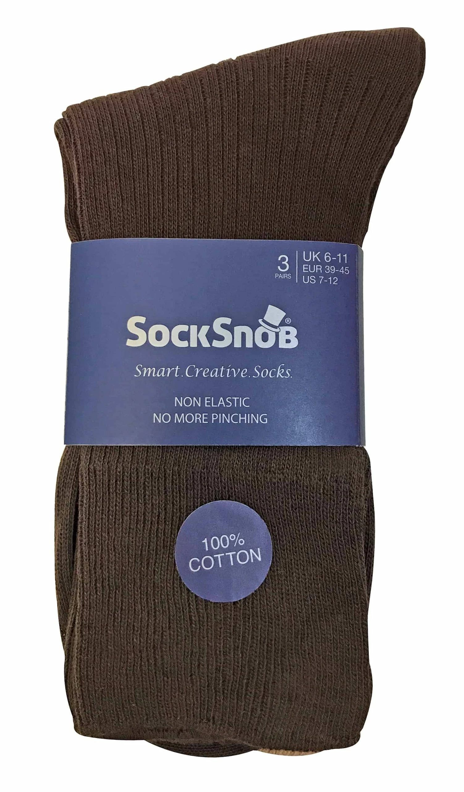 100% Cotton Non Elastic Socks 100% cotton socks are an essential item if you are looking for the ultimate comfort that cotton has to offer. These socks are also non elastic / non-binding giving you extra comfort throughout the day. 100% cotton socks are perfect if you are looking for lightweight socks that are super comfortable. These socks are also breathable and fantastic for the summer months. Where these socks are different from ordinary 100% cotton socks is that they are non-elastic. They are perfect for people who suffer from poor circulation and are suitable for anyone with swollen feet or legs. These socks stretch to the natural contours of your feet, meaning no more nasty constriction rings. However they are not too loose so that they will fall down. These 100% cotton non elastic socks are sold in a 6 pair pack and there are 3 colours available. They are a size 6-11 UK or 11-14 uk and they are made from 100% organic cotton. They are safely machine washable. Extra Product Details – 6 pair pack – 100% cotton – Non elastic – 3 colours available – 6-11 UK / 11-14 uk – Machine washable