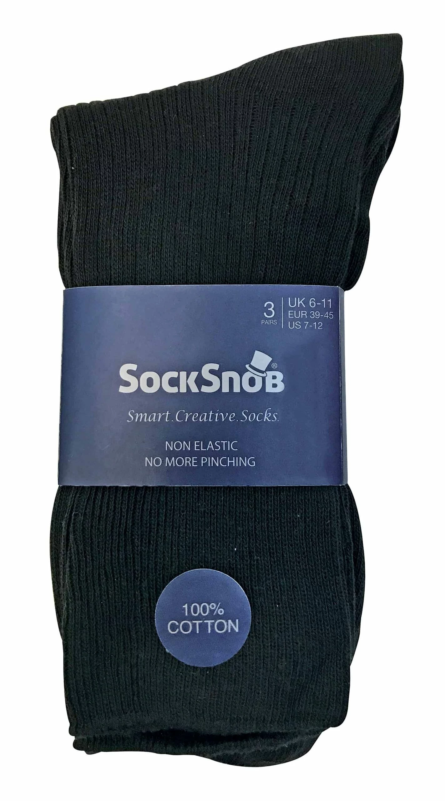 100% Cotton Non Elastic Socks 100% cotton socks are an essential item if you are looking for the ultimate comfort that cotton has to offer. These socks are also non elastic / non-binding giving you extra comfort throughout the day. 100% cotton socks are perfect if you are looking for lightweight socks that are super comfortable. These socks are also breathable and fantastic for the summer months. Where these socks are different from ordinary 100% cotton socks is that they are non-elastic. They are perfect for people who suffer from poor circulation and are suitable for anyone with swollen feet or legs. These socks stretch to the natural contours of your feet, meaning no more nasty constriction rings. However they are not too loose so that they will fall down. These 100% cotton non elastic socks are sold in a 6 pair pack and there are 3 colours available. They are a size 6-11 UK or 11-14 uk and they are made from 100% organic cotton. They are safely machine washable. Extra Product Details – 6 pair pack – 100% cotton – Non elastic – 3 colours available – 6-11 UK / 11-14 uk – Machine washable