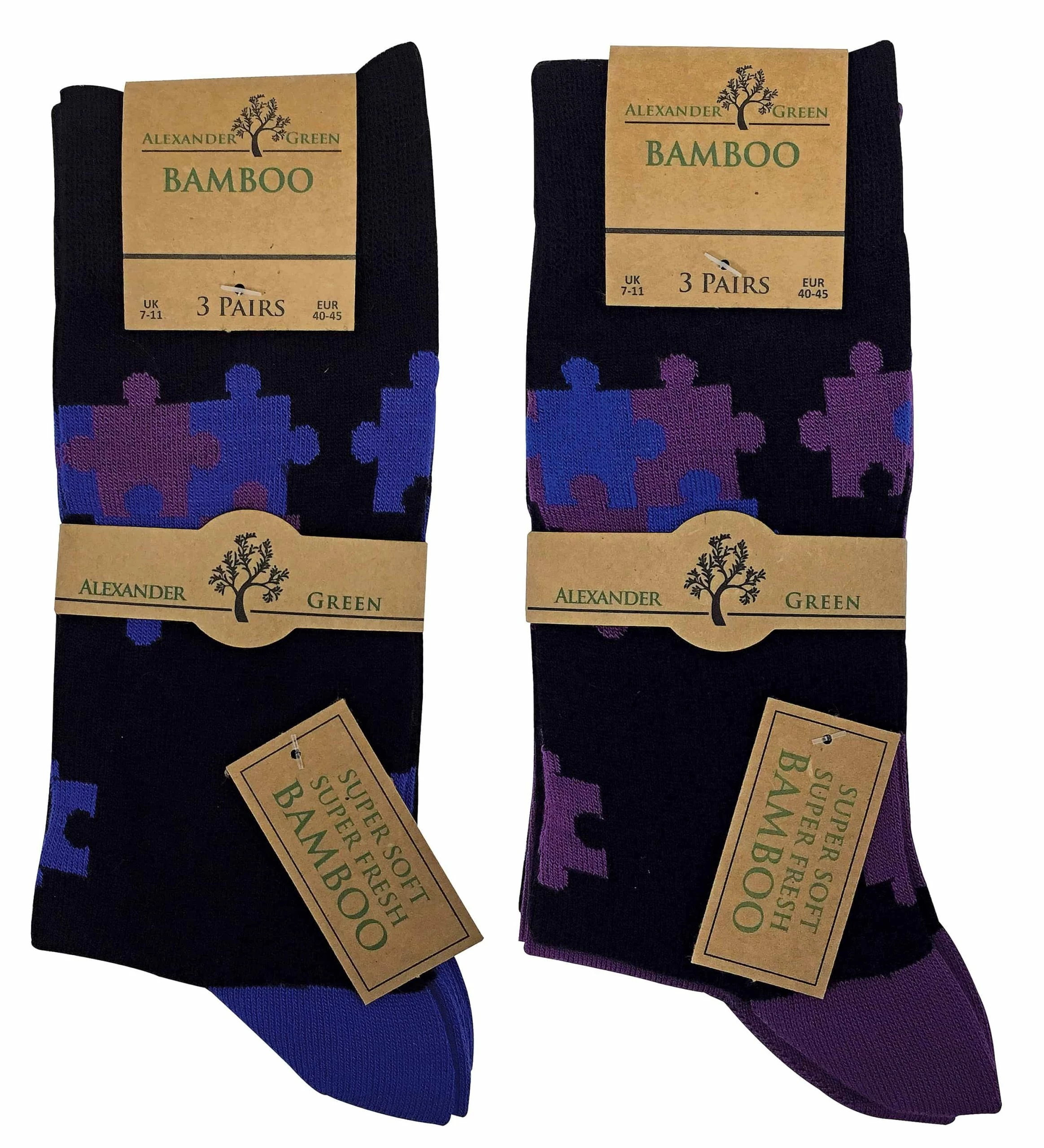 6 Pairs of Mens Bamboo Socks 6 Pairs of Mens Incredibly Soft and Comfortable Bamboo Socks. Pick from 5 trendy styles including Tetris, Polka Dot, Fairisle, Squares and Paisley. As Bamboo is a natural fibre, these socks are thermo-controlling, with micro gaps that are filled in the yarn, meaning they will regulate the temperature in your feet. In the Summer your feet will be cool and in the winter these socks will keep your feet toasty and warm. The qualities of bamboo also means these socks will sit close to the skin without the pressure of clinging to it. They are also anti-bacterial and naturaly antifungal so that your feet can keep fresher for longer. As well as using revolutionary fibres, bamboo socks are also completely organic, stable and ethically sustainable. 78% Bamboo 21% Polyamide 1% Elastane