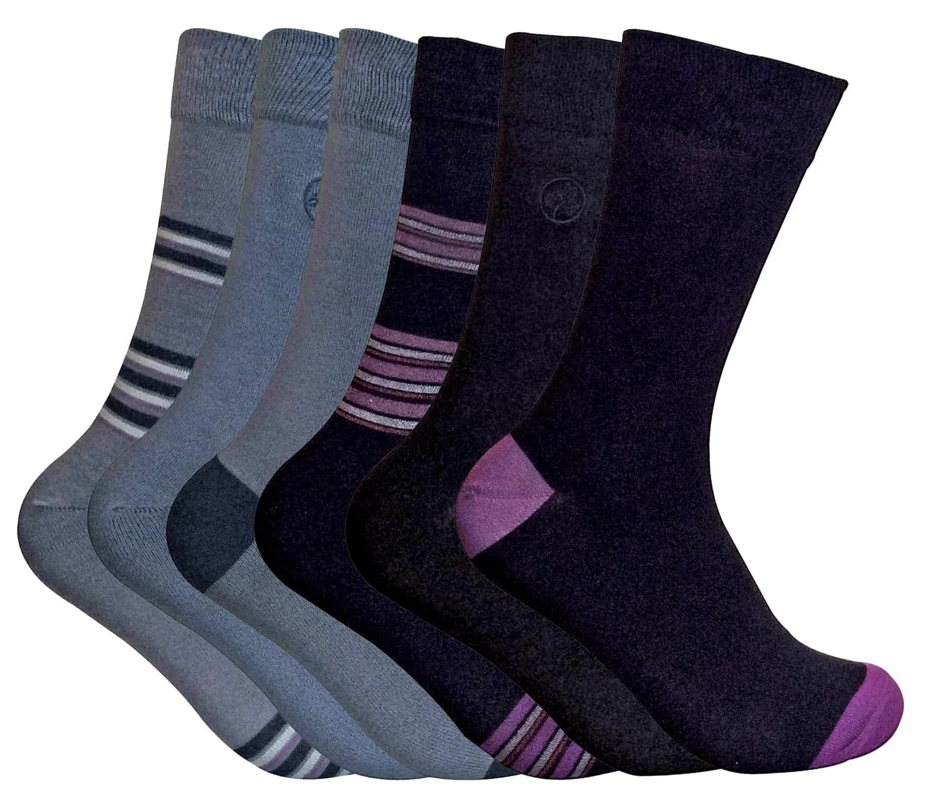 6 Pairs of Mens Bamboo Socks 6 Pairs of Mens Incredibly Soft and Comfortable Bamboo Socks. Pick from 5 trendy styles including Tetris, Polka Dot, Fairisle, Squares and Paisley. As Bamboo is a natural fibre, these socks are thermo-controlling, with micro gaps that are filled in the yarn, meaning they will regulate the temperature in your feet. In the Summer your feet will be cool and in the winter these socks will keep your feet toasty and warm. The qualities of bamboo also means these socks will sit close to the skin without the pressure of clinging to it. They are also anti-bacterial and naturaly antifungal so that your feet can keep fresher for longer. As well as using revolutionary fibres, bamboo socks are also completely organic, stable and ethically sustainable. 78% Bamboo 21% Polyamide 1% Elastane
