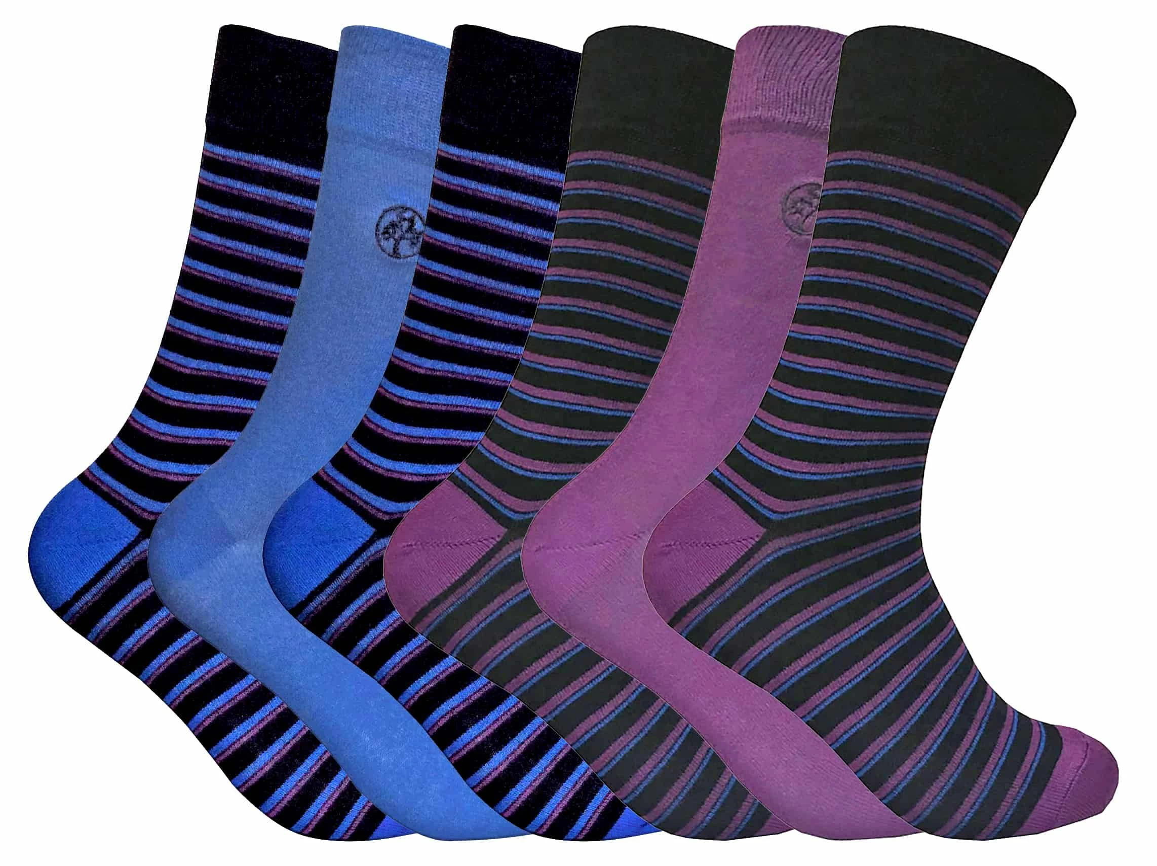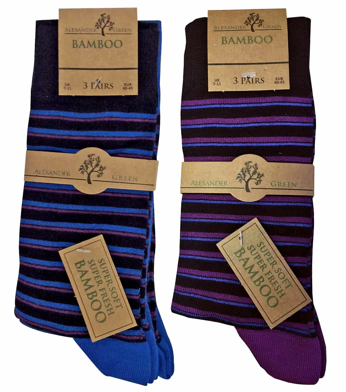 6 Pairs of Mens Bamboo Socks 6 Pairs of Mens Incredibly Soft and Comfortable Bamboo Socks. Pick from 5 trendy styles including Tetris, Polka Dot, Fairisle, Squares and Paisley. As Bamboo is a natural fibre, these socks are thermo-controlling, with micro gaps that are filled in the yarn, meaning they will regulate the temperature in your feet. In the Summer your feet will be cool and in the winter these socks will keep your feet toasty and warm. The qualities of bamboo also means these socks will sit close to the skin without the pressure of clinging to it. They are also anti-bacterial and naturaly antifungal so that your feet can keep fresher for longer. As well as using revolutionary fibres, bamboo socks are also completely organic, stable and ethically sustainable. 78% Bamboo 21% Polyamide 1% Elastane