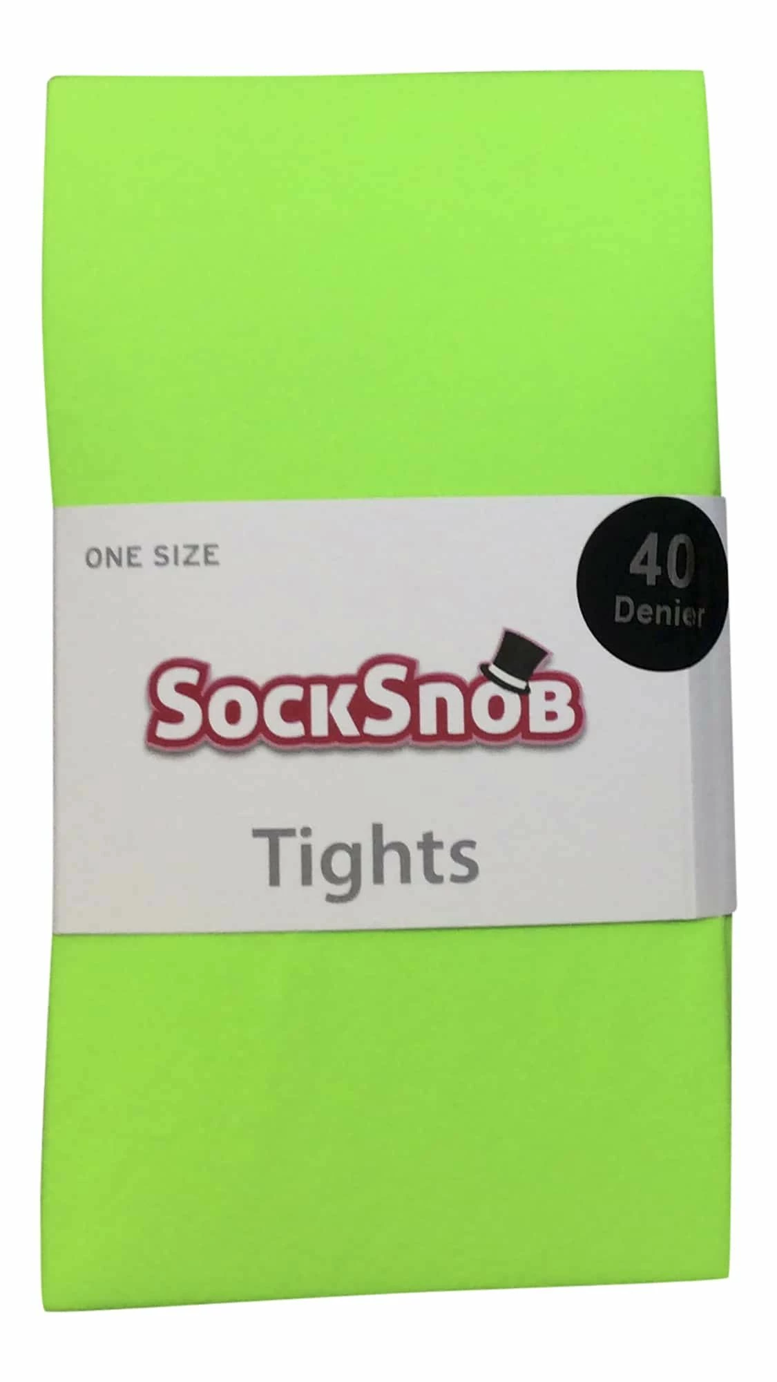 Ladies Neon Tights These bright and colourful neon tights are perfect for any neon nights! They come in a range of cheerful colours which will perfectly fit into your outfit. They are 40 Denier, and still cosy enough for wearing all night long as you party! Single pair recieved, and one size of 4-10 US / 36-42″ Hip. Choose from 5 bright colours! Extra Product Details 1 Pair 5 Colours 40 Den 4-10 US / 36-42″ Hip Sock Snob Own Brand Perfect for fancy dress 94% Nylon, 6% Elastane