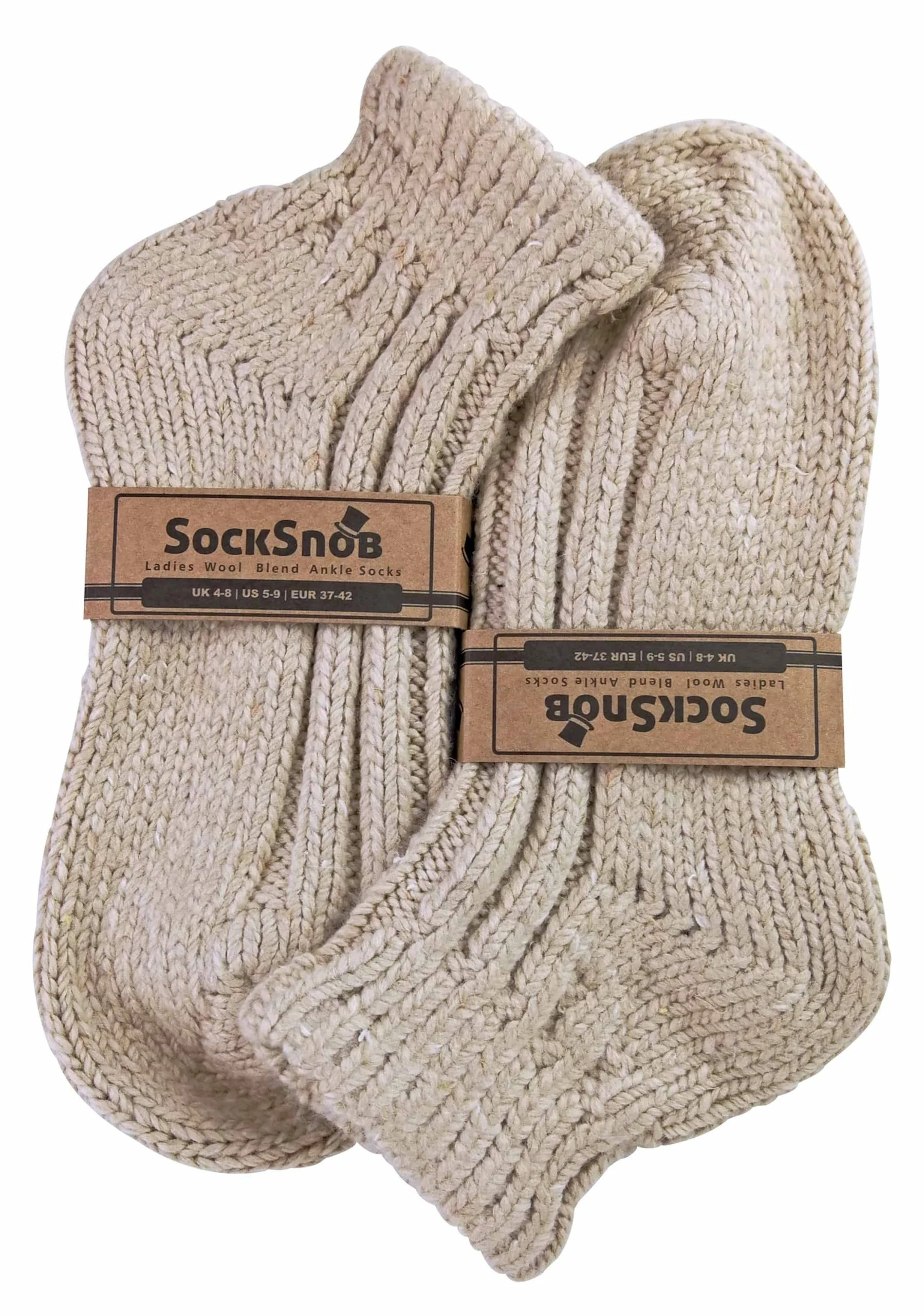 Ladies Wool Ankle Socks When wearing ankle booties, you often find yourself needing a comfortable and thick pair of socks to complement your outfit. These ankle length chunky knit socks are perfect for this situation, fitting at the ideal height to be worn with ankle boots and are also thick enough to keep feet comfortable in the boot for longer periods of time. These ankle boot socks are ribbed along the top of the foot for some extra design and have a extra chunky cuff to grip around leggings or keep ankle boots from digging into the ankle. They have a classic design of a chunky knit piece of clothing, adding some uniqueness and style to the item. Having 8% wool content adds a natural softness and comfort to the socks. These socks are available in 4 colours and are all size 4-8 UK. Extra Product Details – 1 pair – 4 colours – 4-8 UK – Ribbed – Wool Blend – Chunky Knit – Low Cut – 80% Acrylic, 9% Wool, 5% Cotton, 3% Polyamide, 1% Polyester, 1% Viscose, 1% Elastane – Machine Washable