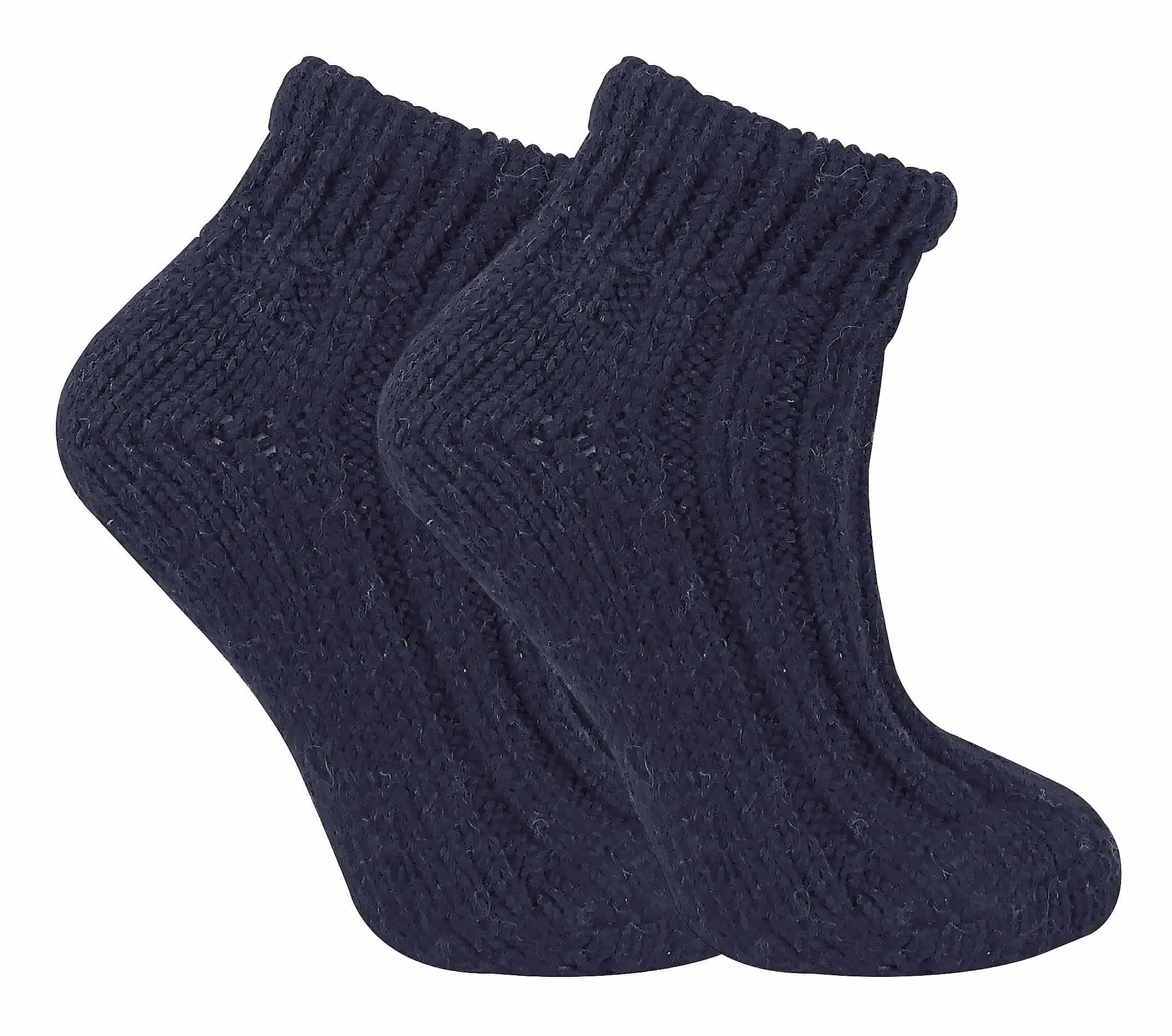 Ladies Wool Ankle Socks When wearing ankle booties, you often find yourself needing a comfortable and thick pair of socks to complement your outfit. These ankle length chunky knit socks are perfect for this situation, fitting at the ideal height to be worn with ankle boots and are also thick enough to keep feet comfortable in the boot for longer periods of time. These ankle boot socks are ribbed along the top of the foot for some extra design and have a extra chunky cuff to grip around leggings or keep ankle boots from digging into the ankle. They have a classic design of a chunky knit piece of clothing, adding some uniqueness and style to the item. Having 8% wool content adds a natural softness and comfort to the socks. These socks are available in 4 colours and are all size 4-8 UK. Extra Product Details – 1 pair – 4 colours – 4-8 UK – Ribbed – Wool Blend – Chunky Knit – Low Cut – 80% Acrylic, 9% Wool, 5% Cotton, 3% Polyamide, 1% Polyester, 1% Viscose, 1% Elastane – Machine Washable