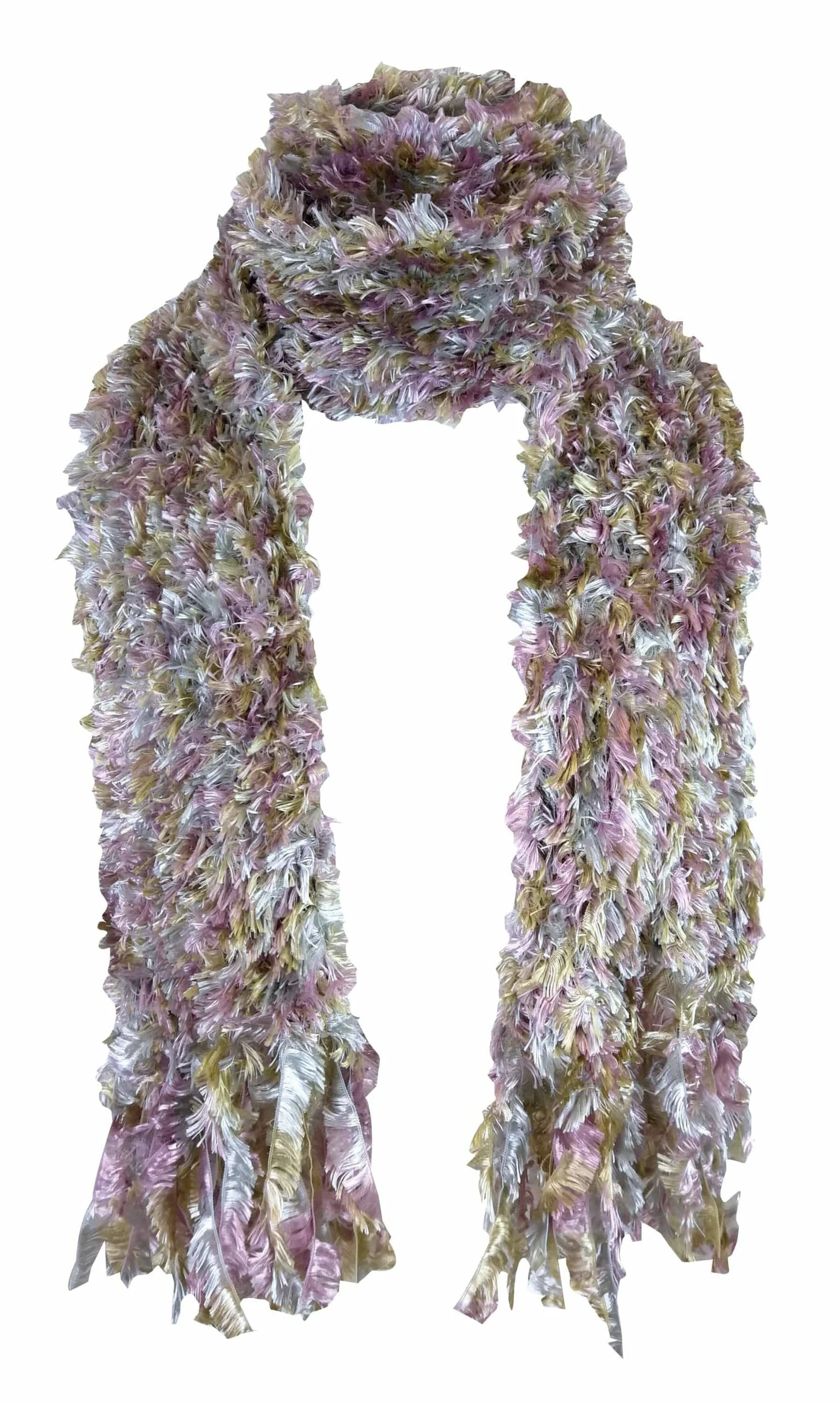 Ladies Polyester Feather Scarf If you are looking for a scarf to use as a fashion statement as well as keeping you mildly warm then these ladies 100% polyester scarves are a choice for you to consider. These scarves are made with a feather style creating a distinct look. They are knitted with lots of different colours, some have the same colour feathers throughout like the cream or purple styles. Some are mixed such as the cream and brown style. In total there are 7 fashionable colours to choose between. They are an ideal gift or a great stocking filler for Christmas time. These scarves are a regular length and are available in 7 colours. They are made from 100% polyester and they are machine washable. Extra Product Details – Ladies Scarfs – 100% Polyester – Feather Style – Fashionable – 7 Colours – Ideal Gift – Machine Washable