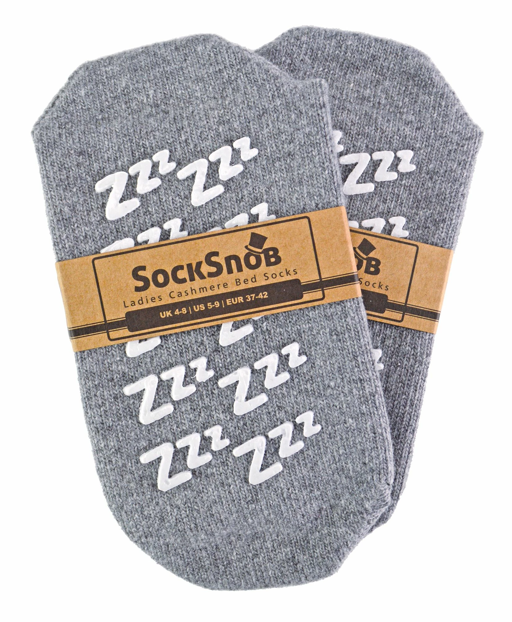 Ladies Cashmere Bed Socks with GrippersWhen you’re spending that cosy night in during the colder months and you want to make sure you’re warm from head to toe, you’ll need to start at your feet. That’s where these Wool Cashmere Bed Socks come in! Super cosy and soft, these socks won’t let you down in winter.The special mix of wool & cashmere fibres create a perfect soft feel and ultimate warmth for your feet. These materials have natural thermal qualities and are ideal to be used as both night or lounge wear.These socks have a great patterned gripper sole of sleepy ZZZ’s, helping to keep you secure on slippery household flooring, such as wooden panels or laminate. They also show that these socks are definitely designed for napping on the sofa on those lazy afternoons.They come in two traditional colours: Beige & Grey with White anti-slip grips, and are available in Ladies size 4-8 UK. They are made of 40% Wool, 28% Viscose, 20% Polyamide, 10% Cashmere, 2% Elastane and are machine washable.Extra Product DetailsLadies Cashmere Bed SocksWool & Cashmere BlendSoft & Comfortable2 Colours AvailableZZZ’s Non Slip GrippersNatural Thermal PropertiesA Great GiftIdeal For Lounging & RelaxingOne SIze: 4-8 UKMachine Washable