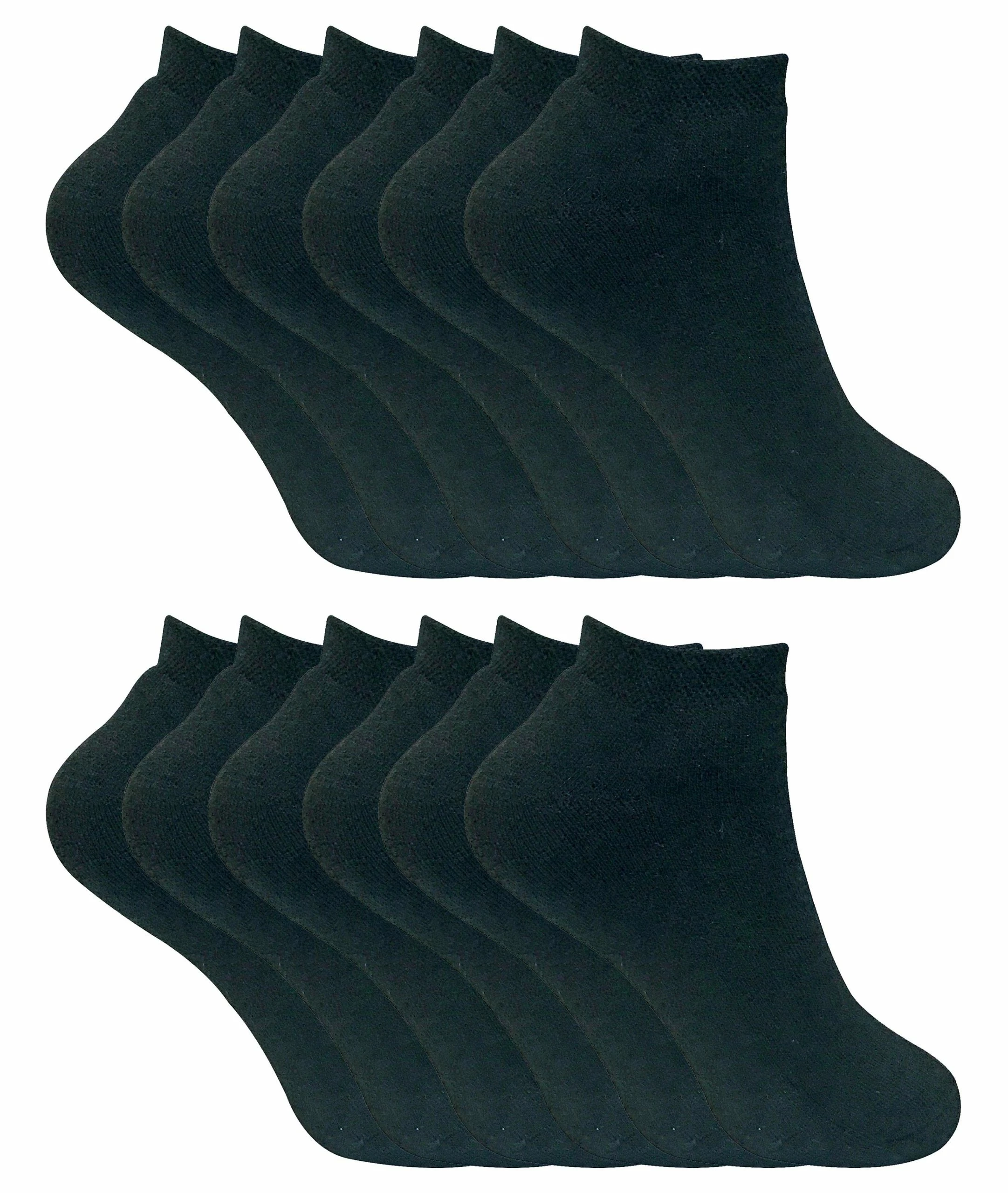 12 Pairs Ladies Thermal Trainer SocksThe best thing about winter is wrapping up warm, but sometimes you need a warm pair of trainer socks. That’s why our thermal trainer socks are so useful, they offer the warmth of regular thermal socks, but in a versatile and comfortable low cut length. These socks have many great features that make them extra comfortable and great for the cold weather. Such as them being brushed inside for better insulation, keeping the warmth closer to the foot. They are also cushioned for improved comfort throughout wear, along with their arch band for a secure fit and improved comfort.These socks have a non-binding honeycomb top which will not dig into the ankle, along with mesh venting panels throughout the knit of the socks for breathability. They also have a smooth toe seam to help avoid irritation. These socks are great value for money as they come in a 12 pair value pack and are available in Ladies size 4-8 UK 37-42 EU 5-8 US. There are 4 colours available including Black, Cream, Charcoal and Mixed. They are made from: 84% Acrylic, 14% Polyamide, 2% Elastane and are machine washable.Extra Product DetailsLadies Thermal Trainer Socks12 Pair Value PackWarm Brushed InnerCushioned FootSoft & ComfortableNon-Binding Honeycomb TopWarm & BreathableSmooth Toe Seams4 Colour OptionsLadies One SIze: 4-8 UKMachine Washable
