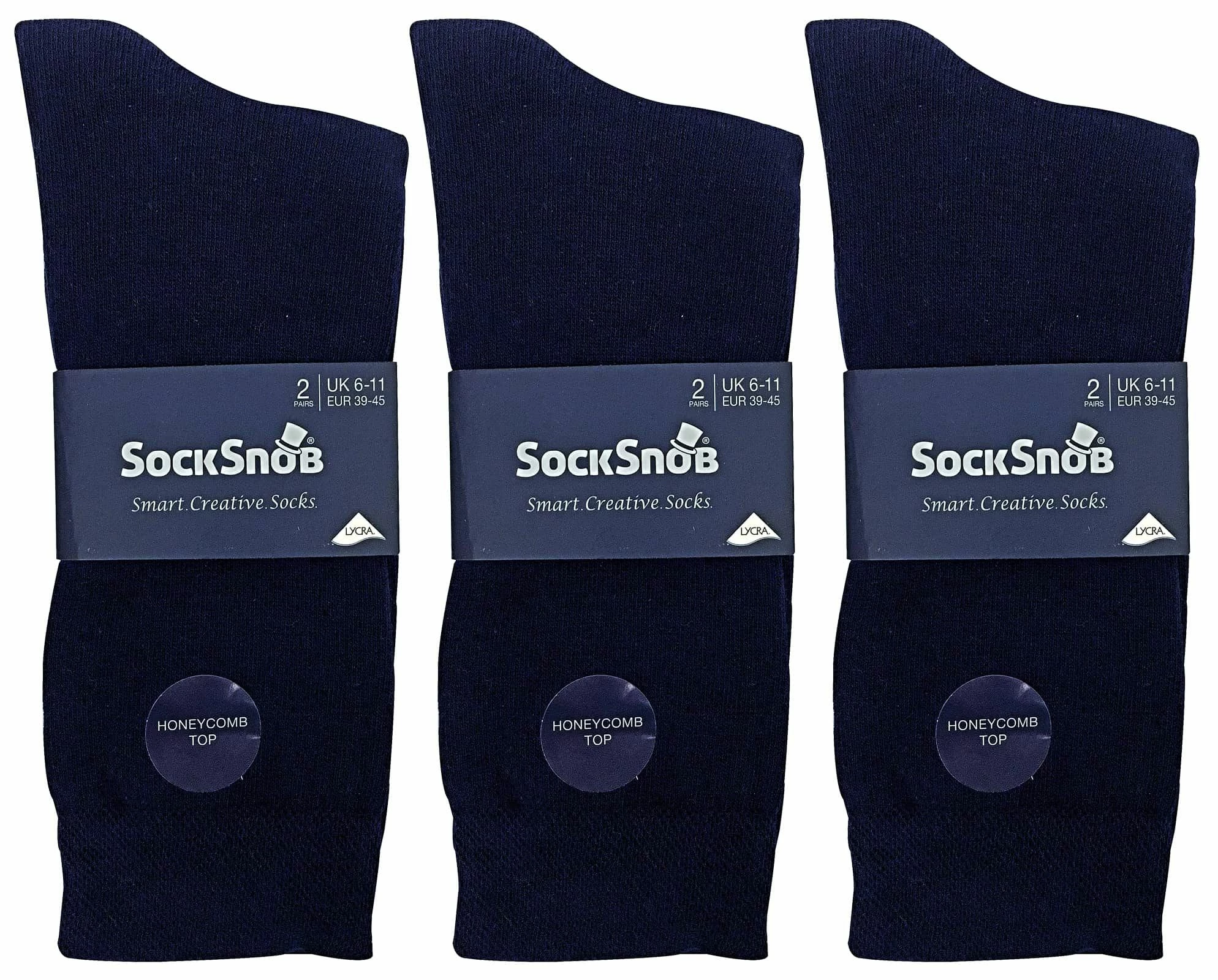 6 pairs of Men’s Sock Snob Premier Collection branded socks Some say that striped socks are the pinnacle of foot fashion for men… but what is a stylish pair of feet worth if they are comfortable? With our very own Sock Snob branded socks your feet will receive the pleasure of being trendy and comfortable at the same time thanks to Sock Snob’s smart creative technologies. There are 3 reasons why your feet can be comfortable all year round in our socks. Firstly, a honeycomb top styled design is placed at the top of the sock to reduce pressure hotspots and constriction rings around the legs, so great for those who need everyday socks to promote circulation. We also have a high cotton content of 80% in our branded socks, surrounding your feet in a natural softness throughout the day. 80% cotton also means high moisture wicking abilities and temperature control, keeping your feet warm in the winter and cool in the summer. There are also 7 modern styles to choose between, 5 striped style named after iconic cities with an additional 2 styles in plain black and black, navy and grey. These socks are machine washable and come in a 6 pair pack. Extra Product Details * 6 pair pack * 7 styles to choose between * Sock Snob branded * Great socks for any occasion * Honeycomb top to enhance comfort * 80% cotton 10% nylon 7% polyester 3% lycra * Size 6-11 UK 7-12 US 39-45 eur * Flat toe seam * Machine Washable