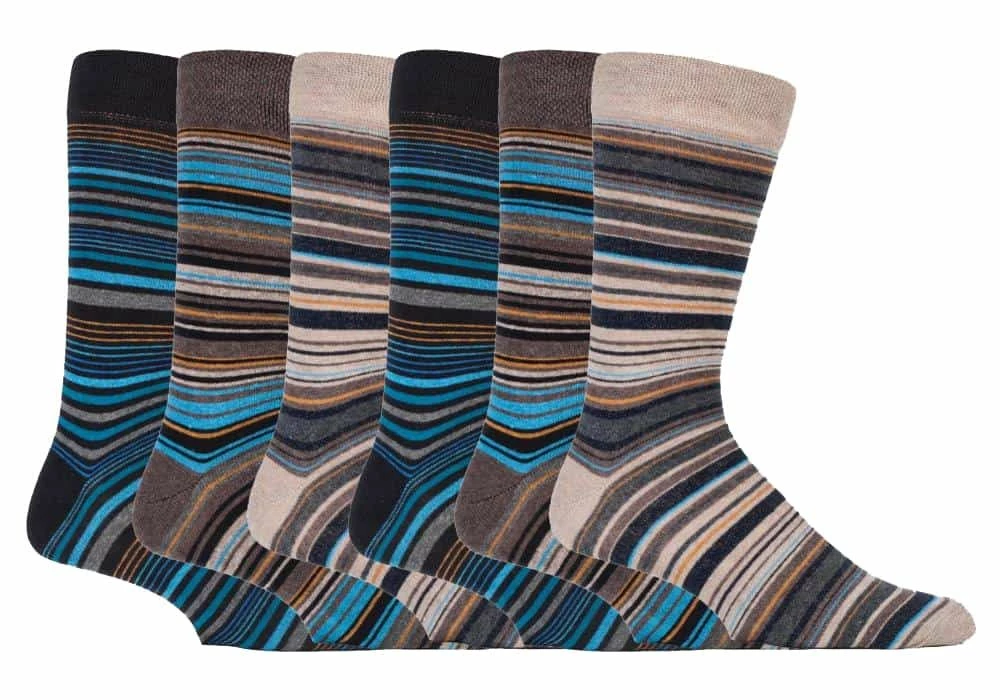 6 pairs of Men’s Sock Snob Premier Collection branded socks Some say that striped socks are the pinnacle of foot fashion for men… but what is a stylish pair of feet worth if they are comfortable? With our very own Sock Snob branded socks your feet will receive the pleasure of being trendy and comfortable at the same time thanks to Sock Snob’s smart creative technologies. There are 3 reasons why your feet can be comfortable all year round in our socks. Firstly, a honeycomb top styled design is placed at the top of the sock to reduce pressure hotspots and constriction rings around the legs, so great for those who need everyday socks to promote circulation. We also have a high cotton content of 80% in our branded socks, surrounding your feet in a natural softness throughout the day. 80% cotton also means high moisture wicking abilities and temperature control, keeping your feet warm in the winter and cool in the summer. There are also 7 modern styles to choose between, 5 striped style named after iconic cities with an additional 2 styles in plain black and black, navy and grey. These socks are machine washable and come in a 6 pair pack. Extra Product Details * 6 pair pack * 7 styles to choose between * Sock Snob branded * Great socks for any occasion * Honeycomb top to enhance comfort * 80% cotton 10% nylon 7% polyester 3% lycra * Size 6-11 UK 7-12 US 39-45 eur * Flat toe seam * Machine Washable