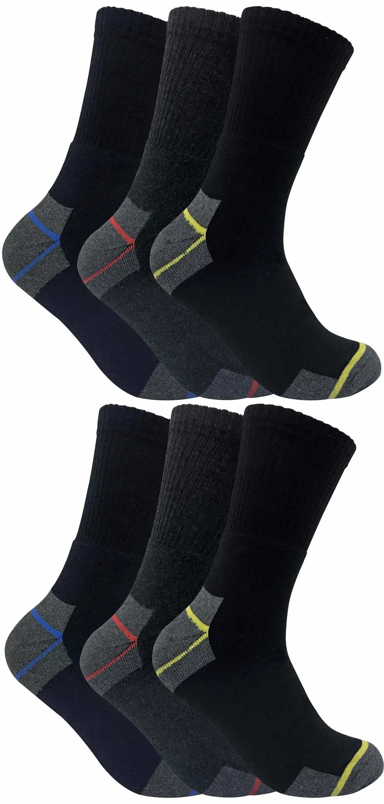 Ultimate Work Socks If you’re looking for a pair of work socks that are reliable in heavy duty work, then these new shorter variations of our Ultimate Work Socks are the best choice. All of this and they still retain all the great features of the original length socks. Our Ultimate Work Socks are great for wearing with steel toe capped boots and industrial boots as of their reinforced heel and toe. This is as well as their full terry cushioning which will absorb sweat and keep feet protected from the strain of a long and hard day of work. These work socks also have a true heel and toe to prevent movement in shoes and improve their overall fit. Their reinforced terry loops are there fore extra comfort and longevity as well as smooth toe seams for use with steel toe boots. They are also cotton rich for natural softness and comfort. These socks come in two mens sizes; 6-11 uk and 11-14 uk. They are also available in different pack quantities of 3, 6 or 12 pairs. Extra Product Details – 3, 6 or 12 pairs – 2 sizes – Long lasting – Heavy Duty – For Steel toe boots – Full terry cushion – True Heel / To – Cotton Rich – Smooth toe seam