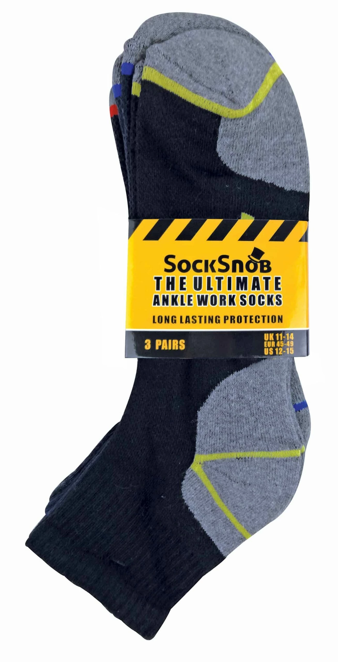 Ultimate Low Cut Work Quarter Socks If you’re looking for a low cut pair of work socks that are reliable in heavy duty work, then these new shorter variations of our Ultimate Work Socks are the best choice. Their ankle length means that they are not too restrictive for moving around while hard at work. Their short ribbed leg ensures they stay up on your leg. All of this and they still retain all the great features of the original length socks. Our Ultimate Work Socks are great for wearing with steel toe capped boots and industrial boots as of their reinforced heel and toe. This is as well as their full terry cushioning which will absorb sweat and keep feet protected from the strain of a long and hard day of work. These work socks also have a true heel and toe to prevent movement in shoes and improve their overall fit. Their reinforced terry loops are there fore extra comfort and longevity as well as smooth toe seams for use with steel toe boots. They are also cotton rich for natural softness and comfort. These socks come in two mens sizes; 6-11 uk and 11-14 uk. They are also available in different pack quantities of 3, 6 or 12 pairs. Extra Product Details – 3, 6 or 12 pairs – 2 sizes – Long lasting – Heavy Duty – For Steel toe boots – Full terry cushion – True Heel / Toe – Low Cut Ankle Length – Cotton Rich – Smooth toe seam
