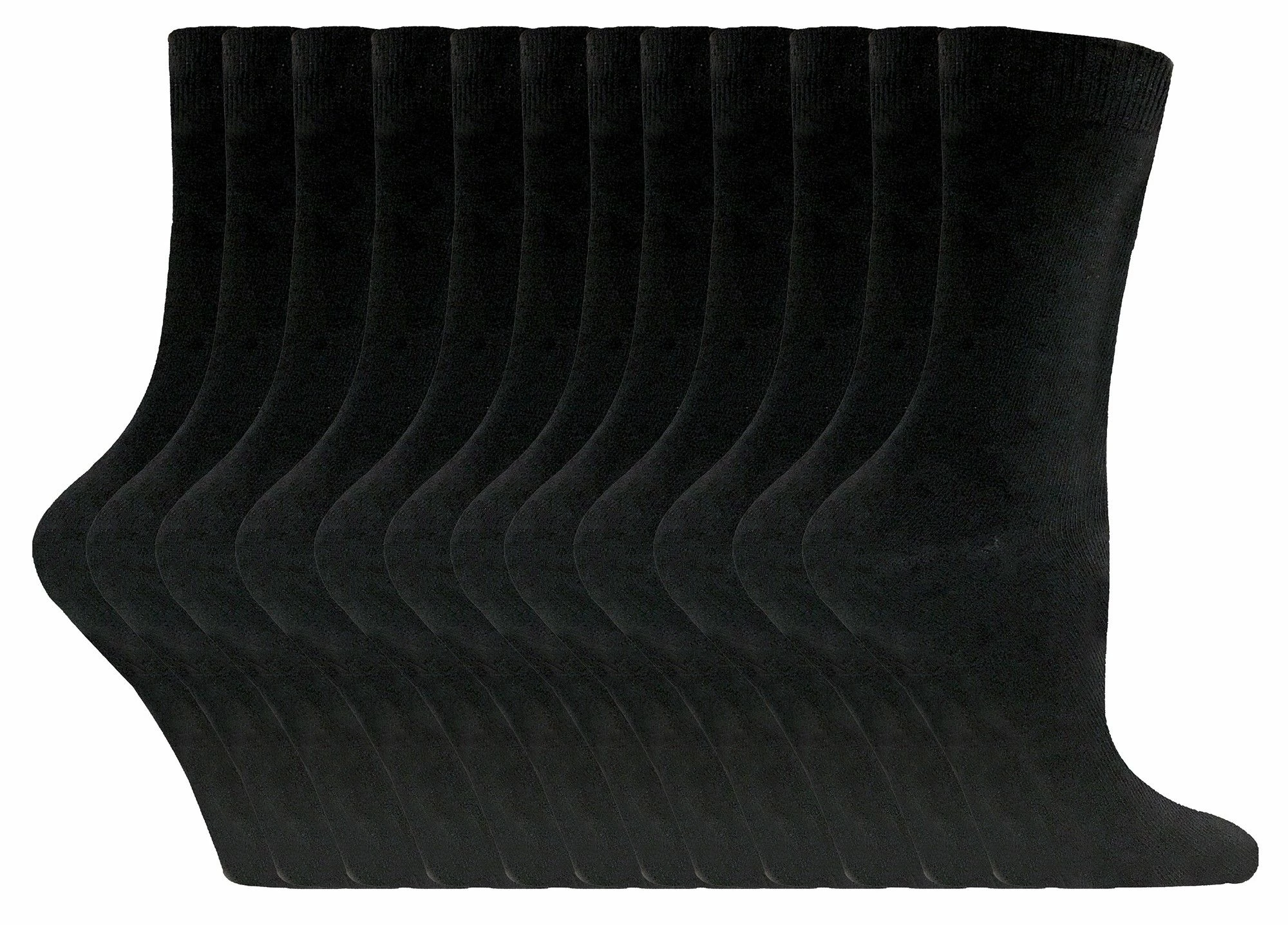 Sock Snob – Ladies 12 Pair Value Pack Colourful Cotton SocksPresenting the vast range of colourful super soft cotton socks by Sock Snob. If you are looking for socks to wear everyday with any kind of attire then our 12 pair pack collection of over 15 colours is perfect and great value for money!If you are looking to bring colour to your sock drawer and give it some variety, then mix and match with all our fashion conscious colours. They are breathable socks and they don’t have a constrictive top like some other socks may have. Made with a soft touch cotton, the perfect fibre for all year round / all day comfort. Cotton, being the desired material as it keeps your feet warm in the winter but also regulates the temperature in the summer. We hope that you try our socks out today and that you’ll keep on coming back to build up your colourful Sock Snob collection!These socks are 12 pairs and come in more than 15 colour options. They are Ladies One Size 4-7 UK and are made from: 84% Cotton, 14% Polyamide, 2% Elastane. They are Machine Washable.Extra Product Details12 Pair Value Pack15 ColoursSized 4-7 UKCotton RichSoft Grip TopGreat Value For MoneySuper ComfortableGreat Casual SocksSimple And PracticalMachine Washable