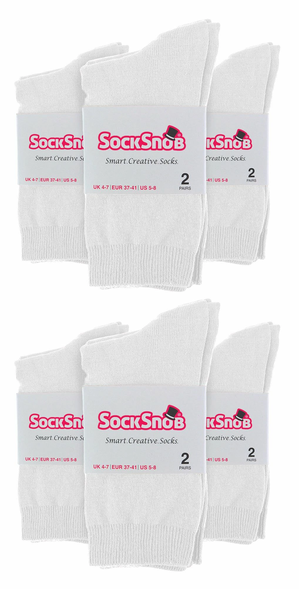 Sock Snob – Ladies 12 Pair Value Pack Colourful Cotton SocksPresenting the vast range of colourful super soft cotton socks by Sock Snob. If you are looking for socks to wear everyday with any kind of attire then our 12 pair pack collection of over 15 colours is perfect and great value for money!If you are looking to bring colour to your sock drawer and give it some variety, then mix and match with all our fashion conscious colours. They are breathable socks and they don’t have a constrictive top like some other socks may have. Made with a soft touch cotton, the perfect fibre for all year round / all day comfort. Cotton, being the desired material as it keeps your feet warm in the winter but also regulates the temperature in the summer. We hope that you try our socks out today and that you’ll keep on coming back to build up your colourful Sock Snob collection!These socks are 12 pairs and come in more than 15 colour options. They are Ladies One Size 4-7 UK and are made from: 84% Cotton, 14% Polyamide, 2% Elastane. They are Machine Washable.Extra Product Details12 Pair Value Pack15 ColoursSized 4-7 UKCotton RichSoft Grip TopGreat Value For MoneySuper ComfortableGreat Casual SocksSimple And PracticalMachine Washable