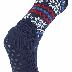Sock Snob Mens Non Slip Thermal Striped Slipper Socks | Bootie Style | Fleece Lined – Navy / Blue
